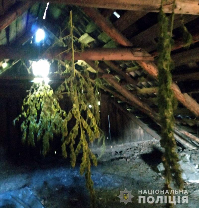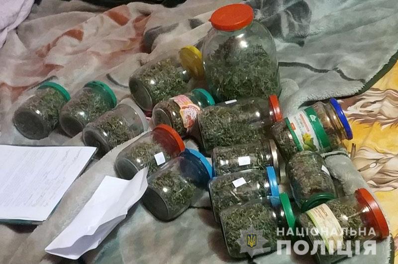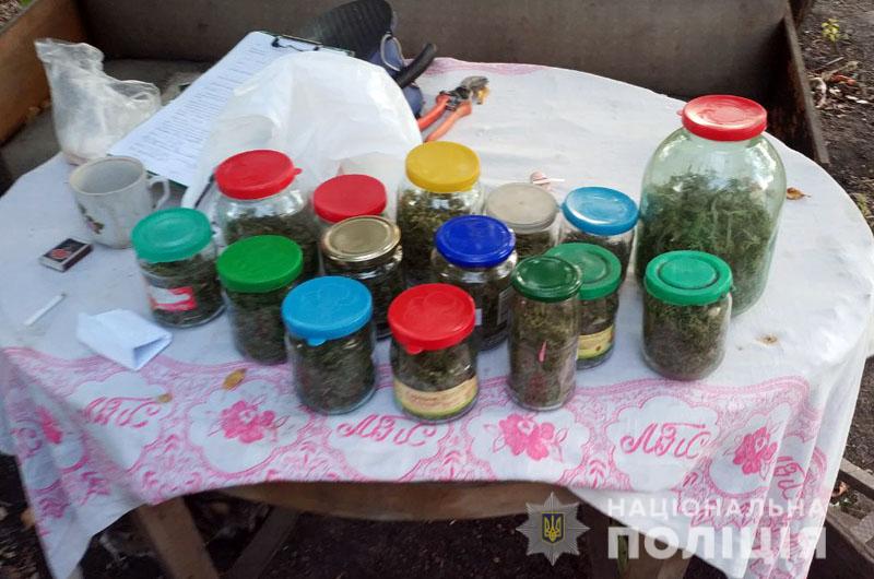 Під час обшуку в будинку поліцейські виявили у шафі 15 банок з марихуаною, а на горищі – ще одну схованку з канабісом та кущі конопель в процесі сушіння.