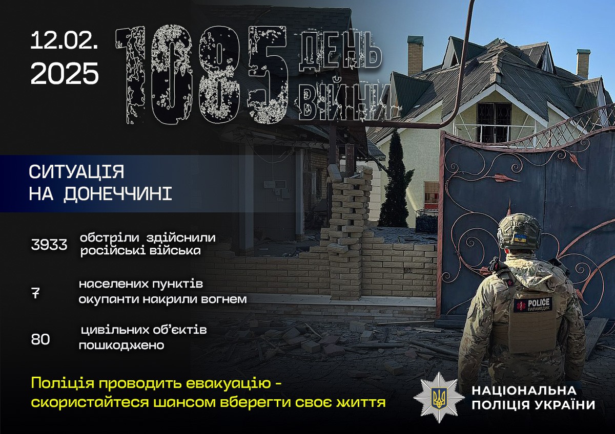 Протягом доби поліція зафіксувала 3 933 ворожих обстріли по лінії фронту та житловому сектору.