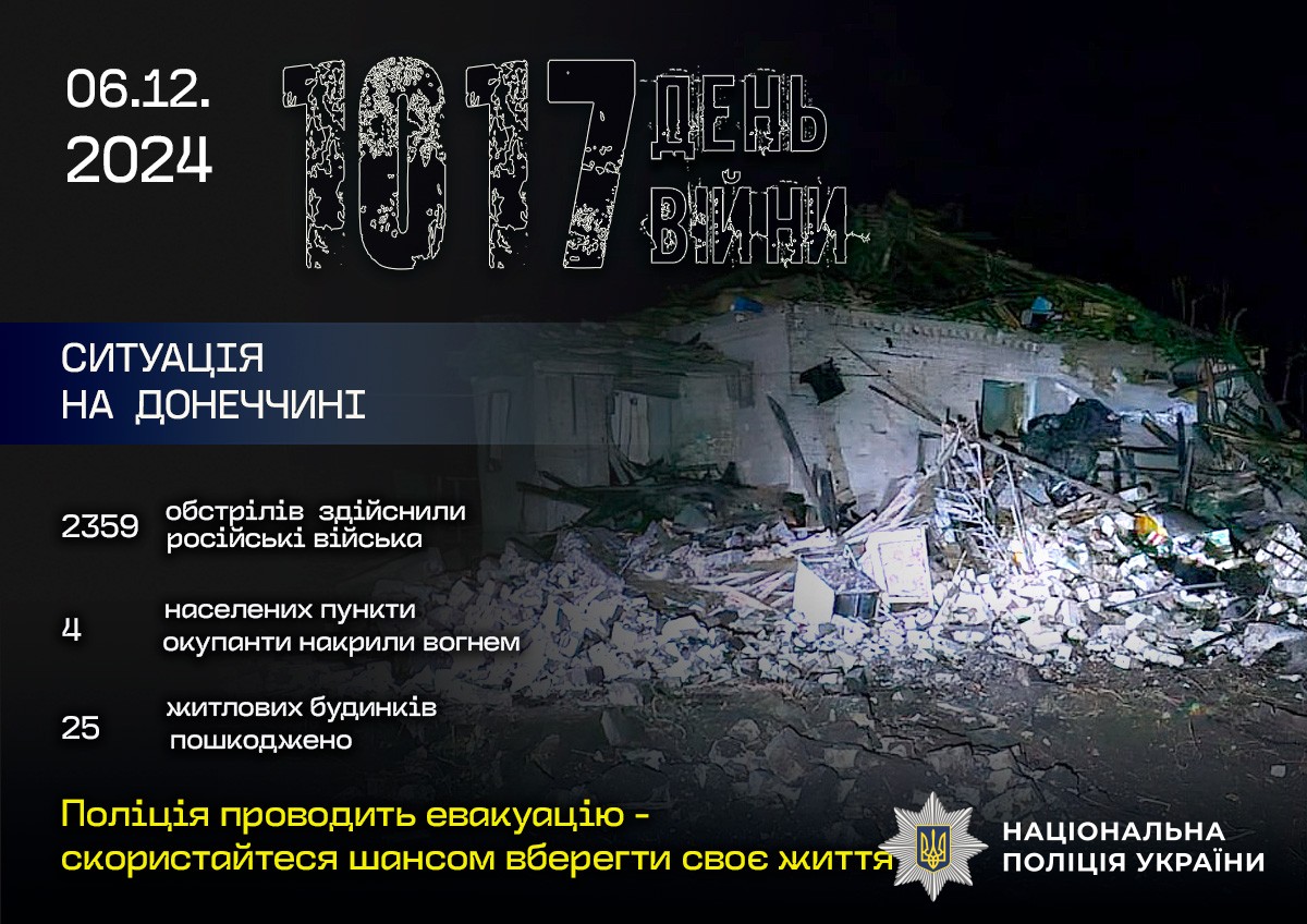 Поліція зафіксувала 2 359 ворожих обстрілів по лінії фронту та житловому сектору.