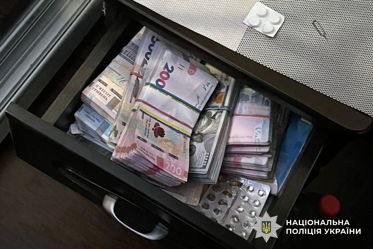 Крім того, в результаті обшуку за місцем мешкання ділка вилучено майже 500 000 гривень та понад 64 000 доларів США.