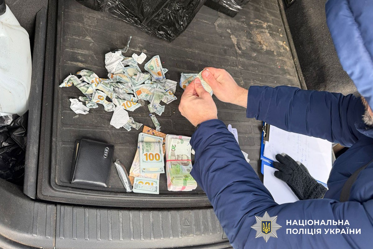 Під час передачі частини обумовленої суми неправомірної вигоди 41-річного зловмисника було затримано в порядку ст. 208 Кримінального процесуального кодексу України. У чоловіка вилучено заздалегідь ідентифіковані грошові кошти в розмірі 1800 доларів, які він намагався знищити.