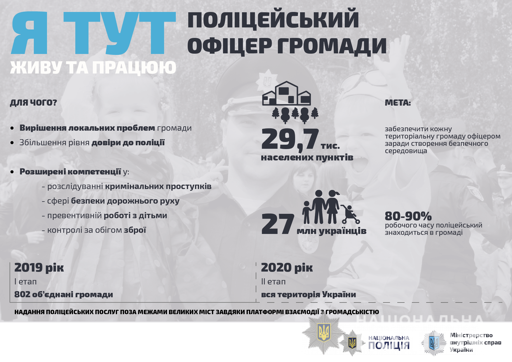 Нагадаємо, минулого року МВС України дало старт новому проекту «Поліцейський офіцер громади». Мета проекту - забезпечення кожної ОТГ офіцером поліції. Поліцейський офіцер громади - це офіцер поліції, який орієнтований на вирішення безпекових проблем саме своєї територіальної громади.