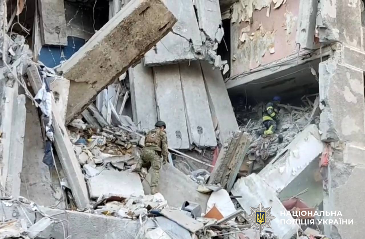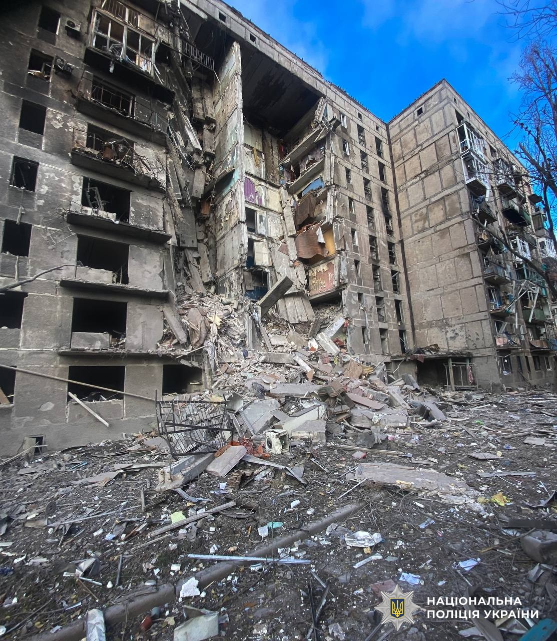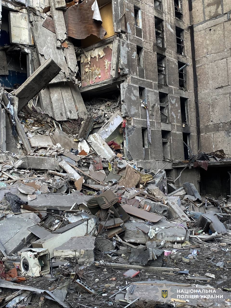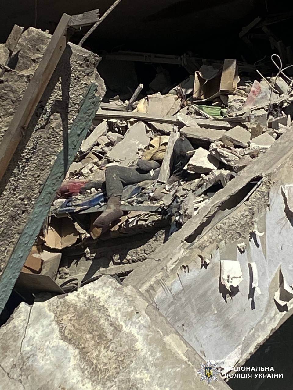 Внаслідок влучання ракети один під’їзд «склався», поховавши під собою двох цивільних мешканців. Убиті, 63-річний чоловік та 66-річна жінка, знаходилися на третьому поверсі.