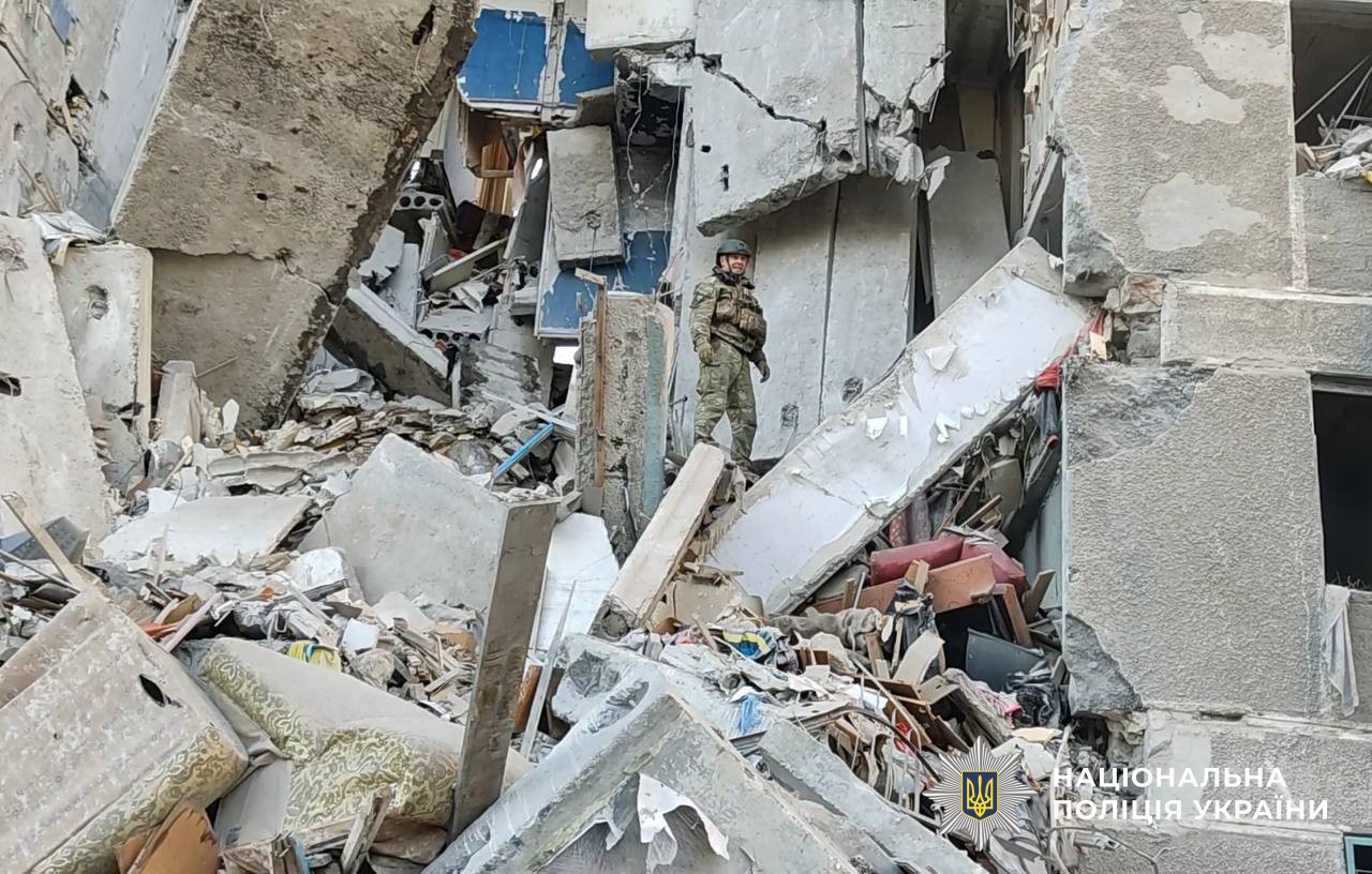 Чоловік і жінка загинули внаслідок російського авіаудару по дев’ятиповерхівці вчора, 9 листопада. Без спеціальної техніки деблокувати тіла було неможливо. Проте навіть у місті, що переживає штурмовий натиск окупантів, поліції та ДСНС вдалося це зробити – вручну, під обстрілом.