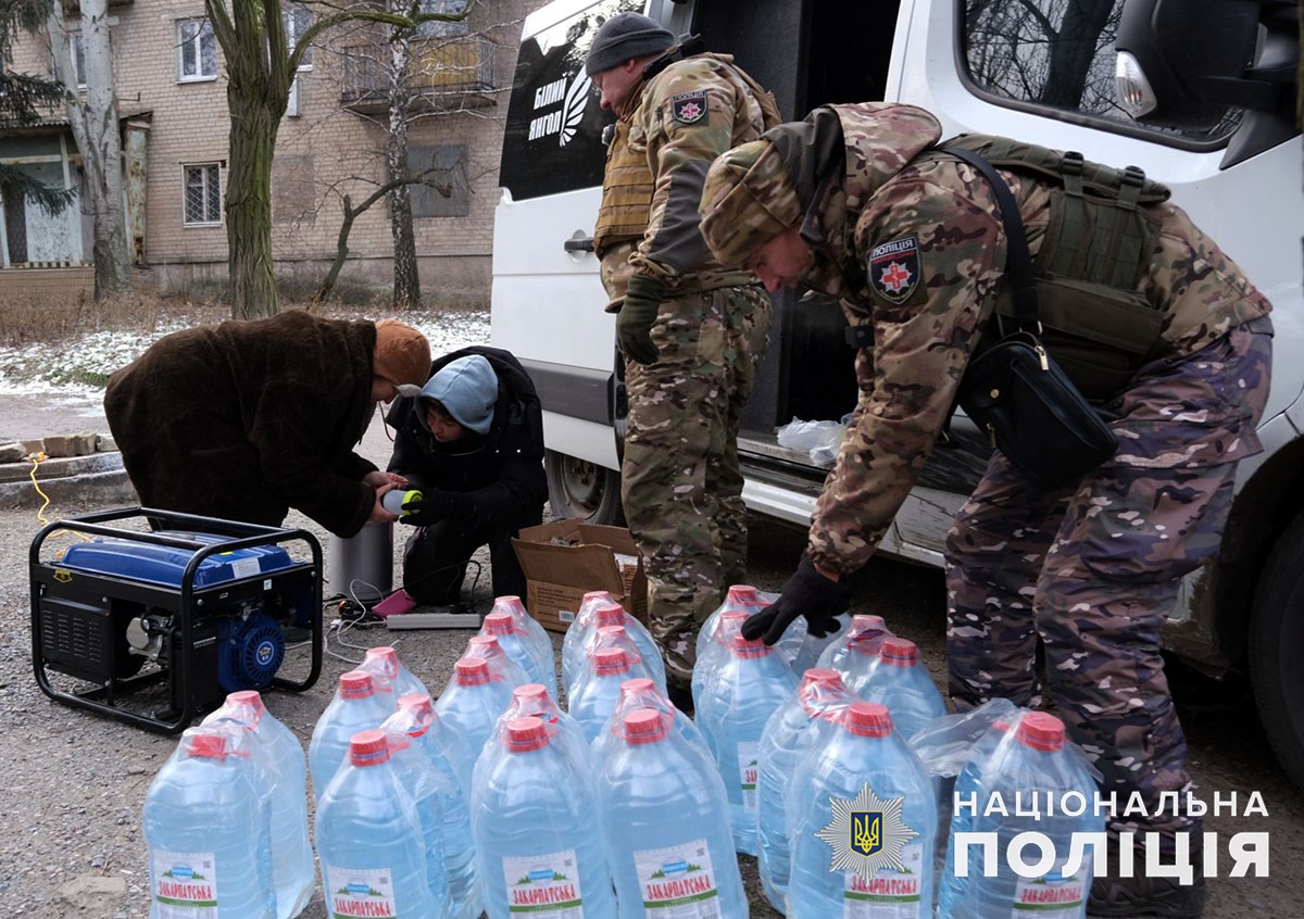 Поліцейський екіпаж, який працює на Мар’їнському напрямку, вирішив підтримати мешканців,які проживають під постійними обстрілами та без комунікацій. Для цього правоохоронці запаслися генераторами та питною водою і вирушили до Красногорівки.