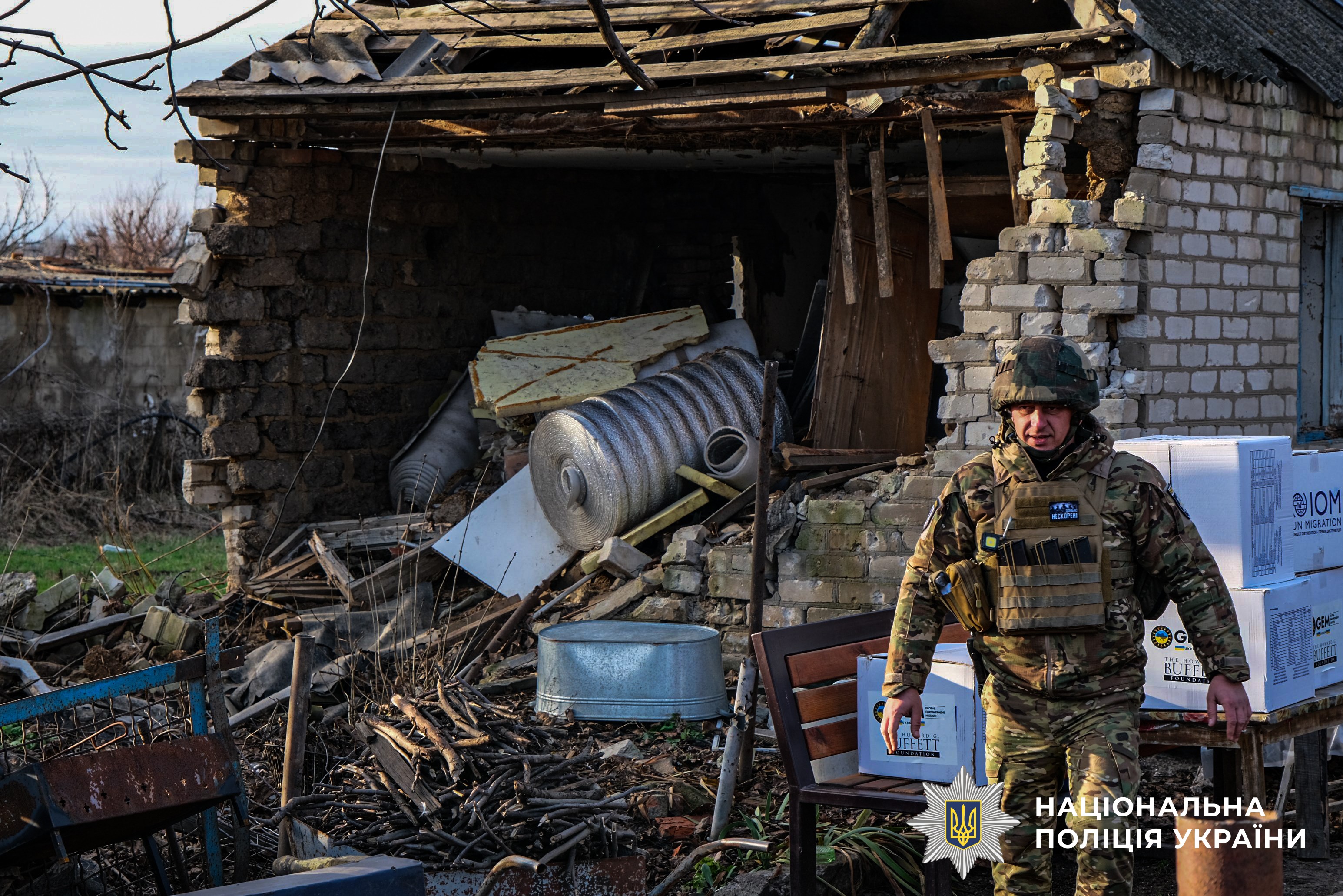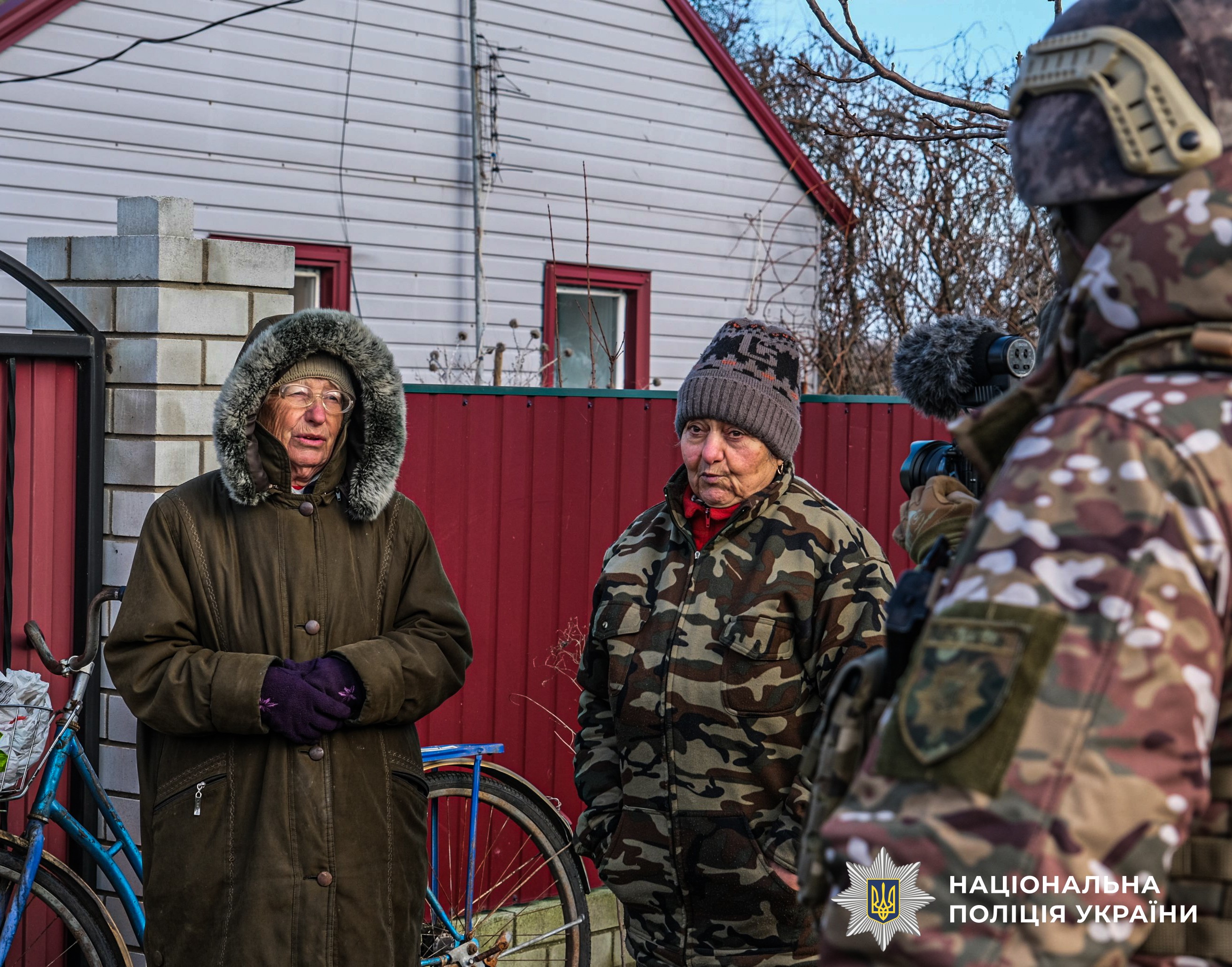 «Дякуючи вам, тримаємося», - так зустрічають правоохоронців мешканці. Цього разу їм привезли воду, теплі ковдри, продуктові та гігієнічні набори. Щоб пережити зиму, люди селяться в будинках по декілька осіб.