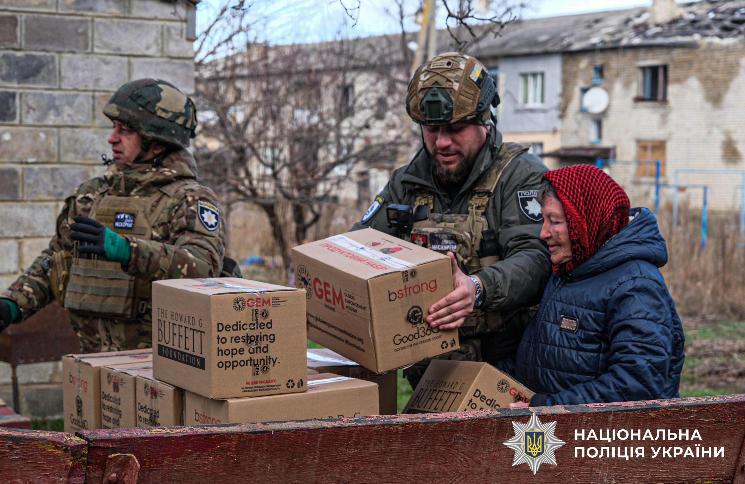 Поруч з жителями залишаються поліцейські, які несуть службу в селищі цілодобово. Одне із завдань правоохоронців – забезпечення людей найнеобхіднішим. Разом з іноземними волонтерами та представниками Великоновосілківської селищної військової адміністрації «білі янголи» доставили у Велику Новосілку та довколишні села велику партію допомоги.