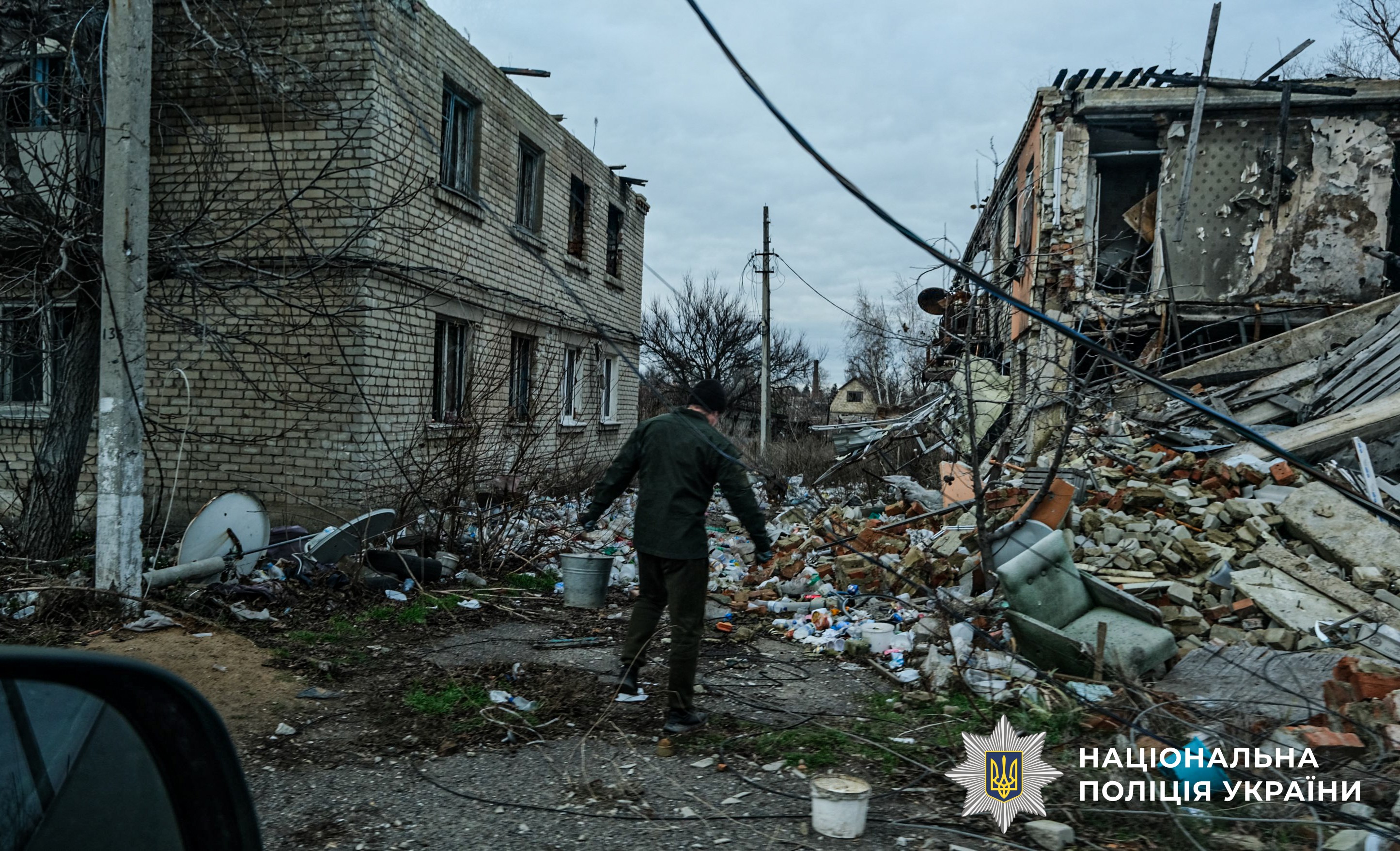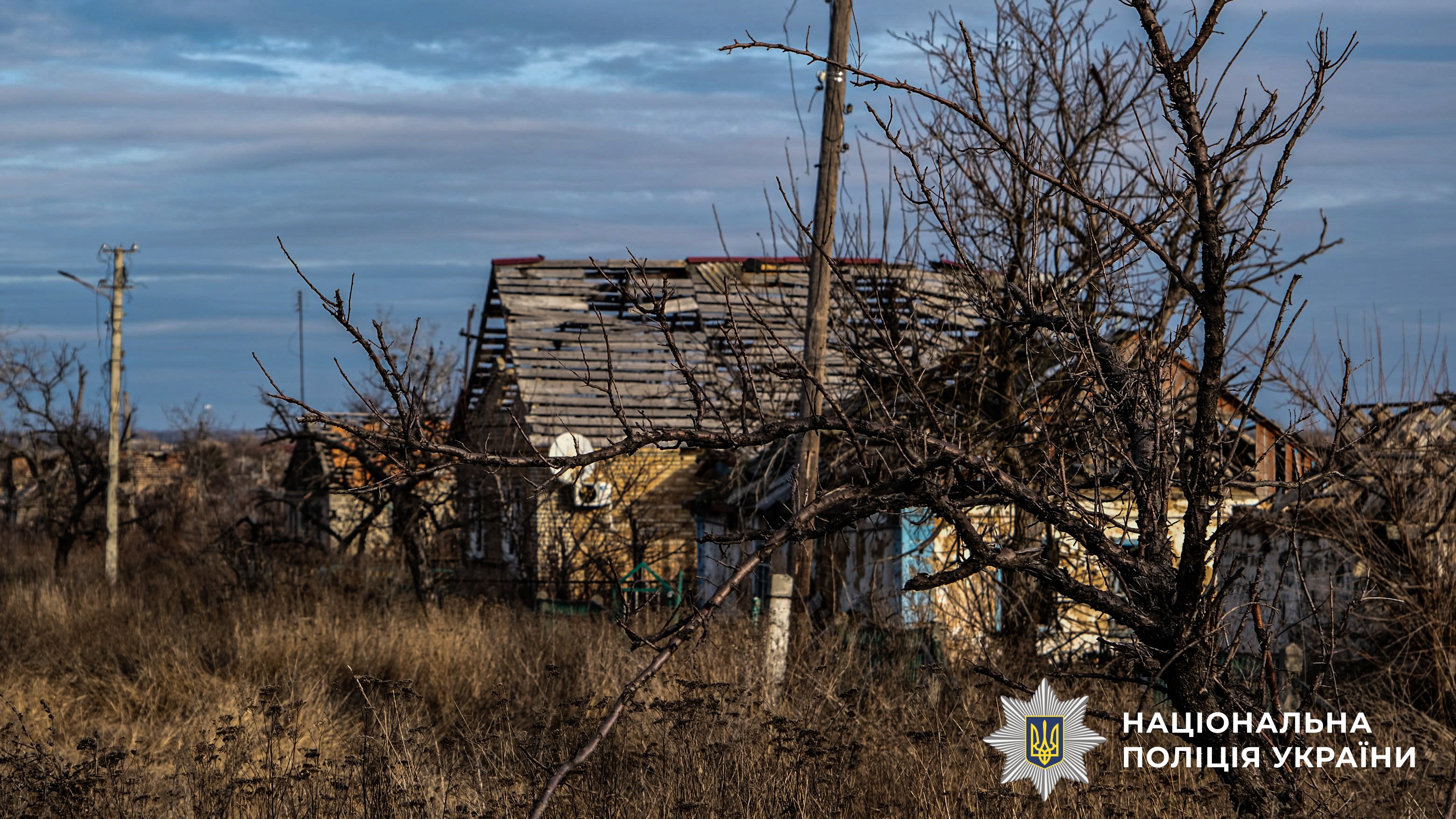 Село Нескучне пережило окупацію і зараз повністю зруйноване. Тут не залишилося жодного жителя. Після деокупації під час стабілізаційних заходів поліцейські вивезли з села останню мешканку. Наразі літня жінка у безпеці.