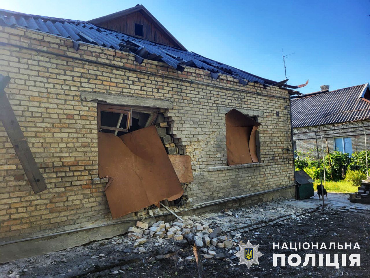 Зруйновано та пошкоджено 18 цивільних об‘єктів – 10 житлових будинків, магазин, господарські споруди, гаражі, автомобілі та поле пшениці.