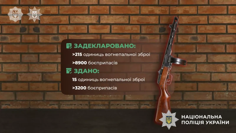 Додатково до поліції було здано 15 одиниць вогнепальної зброї та 3 221 боєприпас.