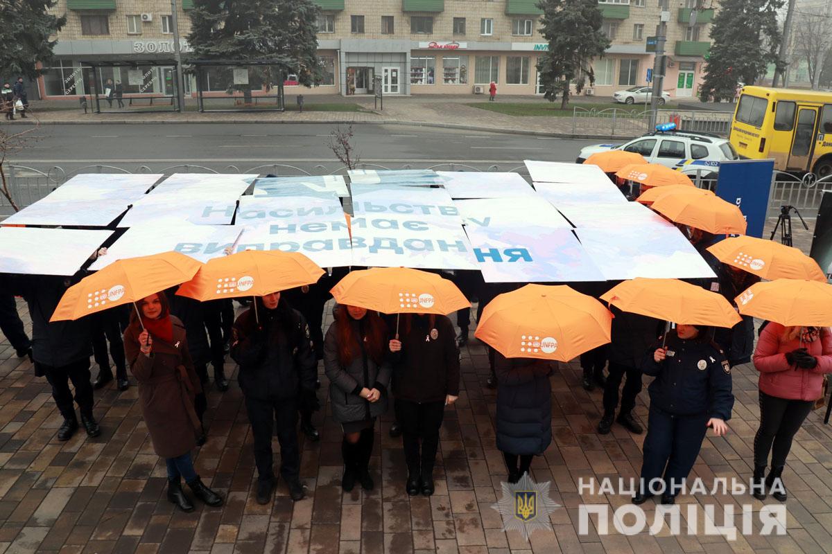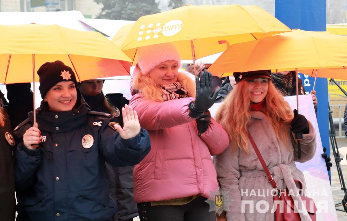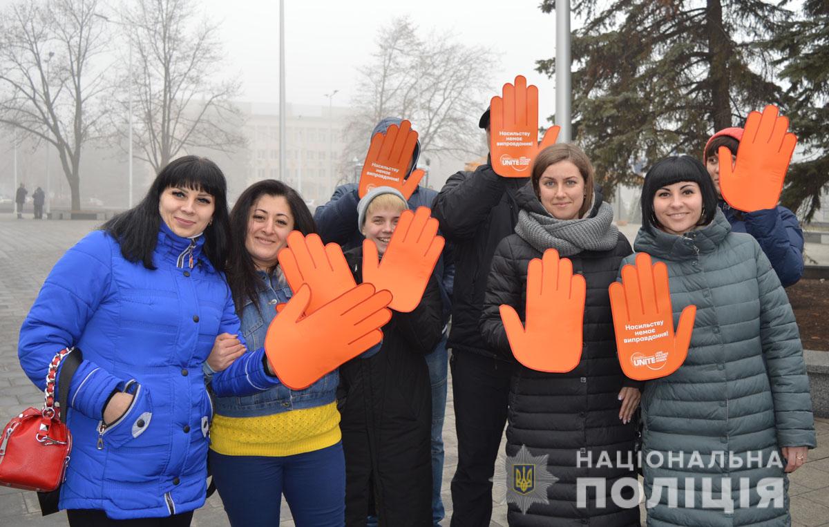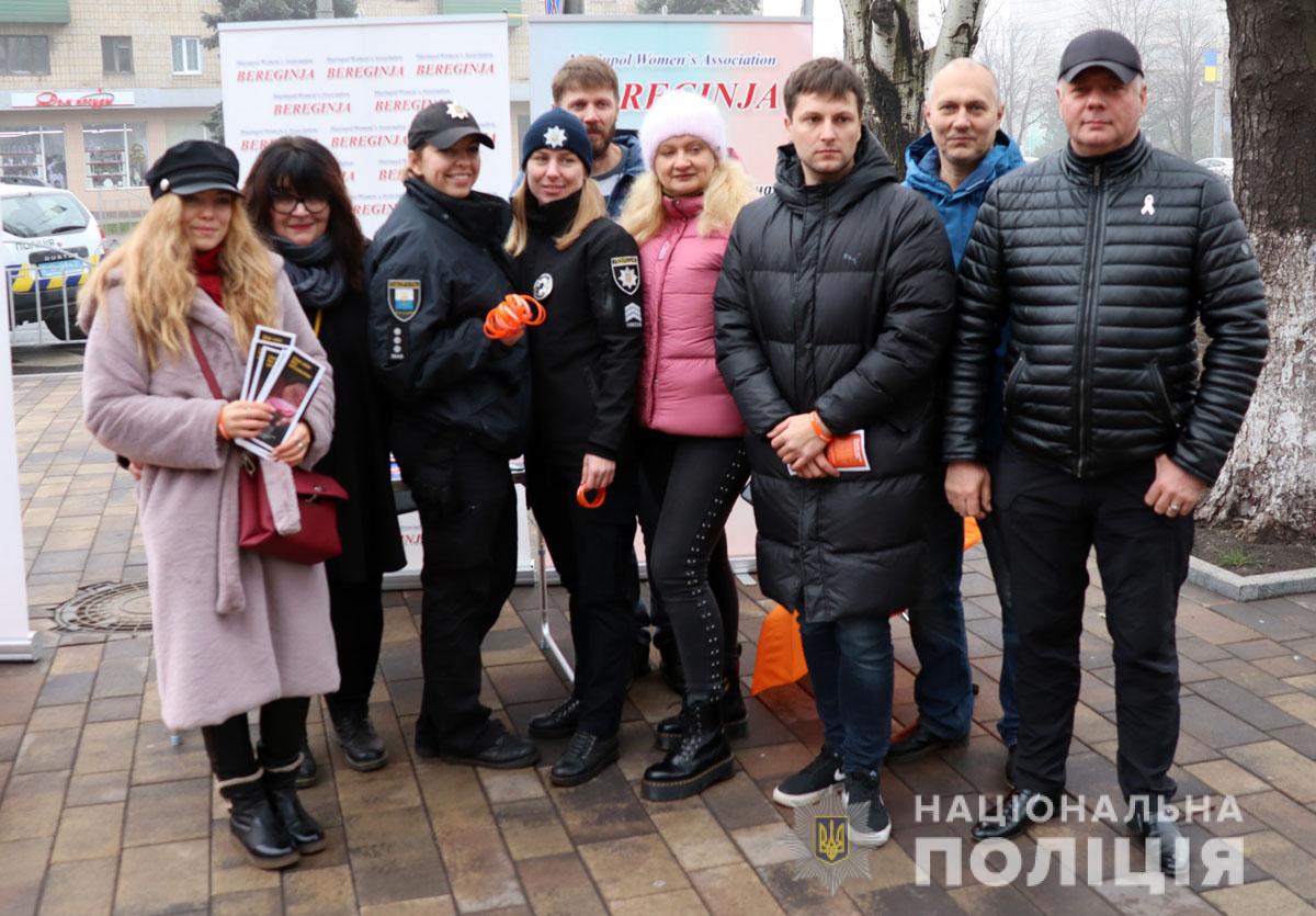 Сьогодні у Маріуполі в рамках щорічної Всеукраїнської акції «16 днів проти насильства» відбувся тематичний захід під гаслом «Дій проти насильства!». Його ініційовано Головним управлінням Національної поліції в Донецькій області та проведено спільно з поліцією Маріуполя, патрульною поліцією, курсантами Донецького юридичного інституту, представниками міської ради та Маріупольського місцевого центру з надання безоплатної правової вторинної допомоги.