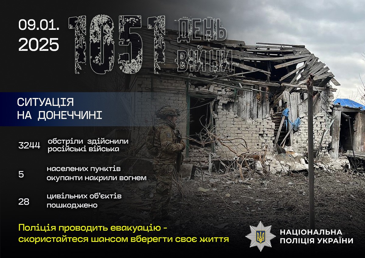 Поліція зафіксувала 3 244 ворожих удари по лінії фронту та житловому сектору.
