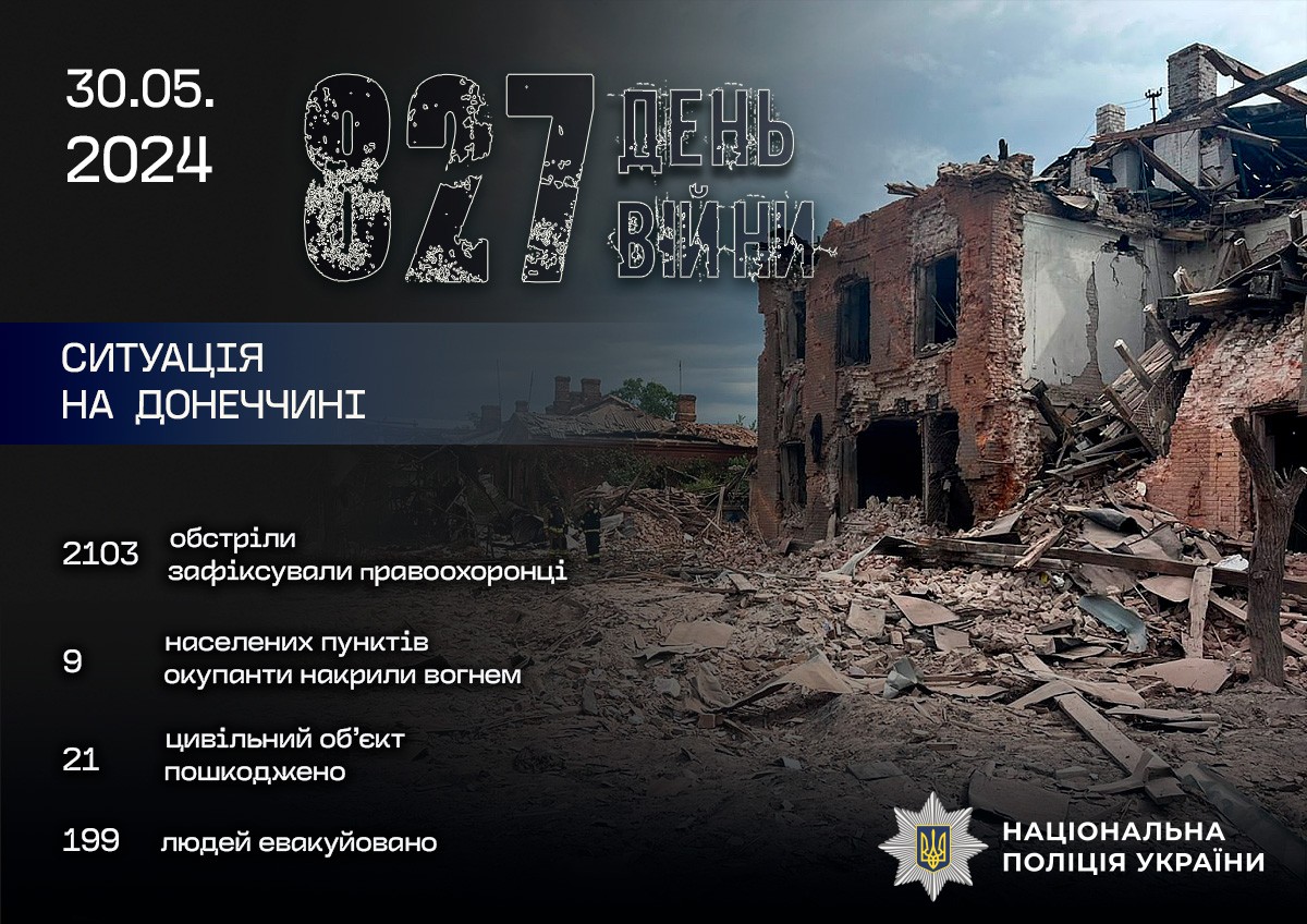 Поліцейські зафіксували 2103 обстріли. Російські війська скинули на житлові квартали 6 авіабомб, били артилерією.