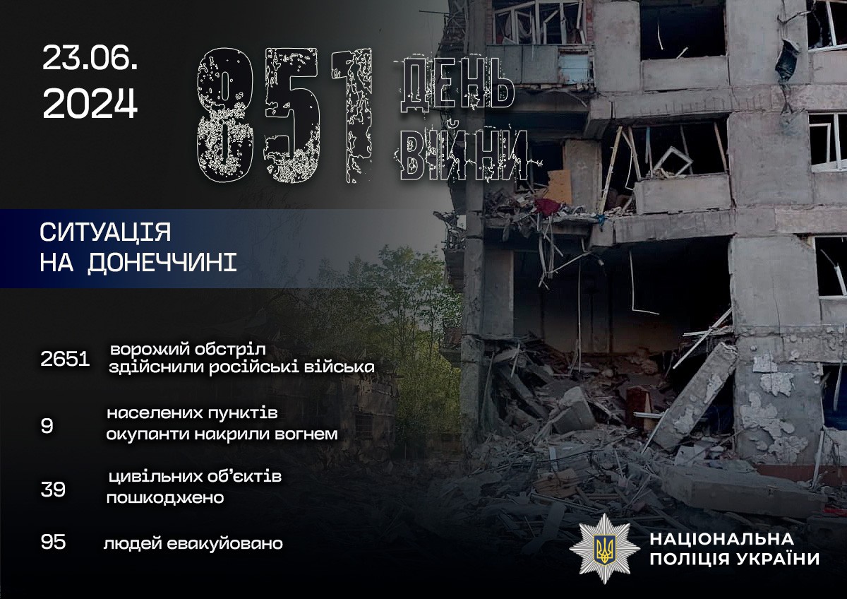 Протягом минулої доби поліція зафіксувала 2651 обстріл. Під вогонь потрапили 9 населених пунктів.