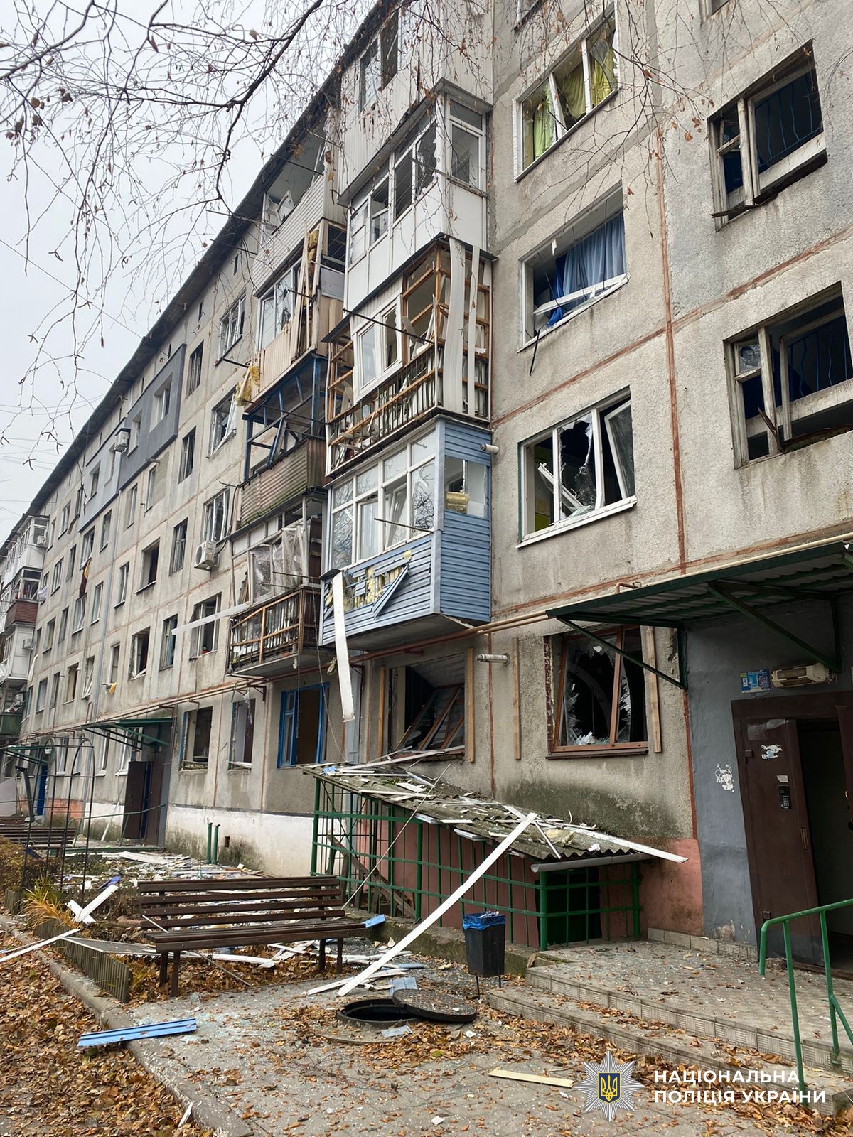 Пошкоджено три багатоквартирних будинки, заклад освіти, цивільне авто, газопровід.