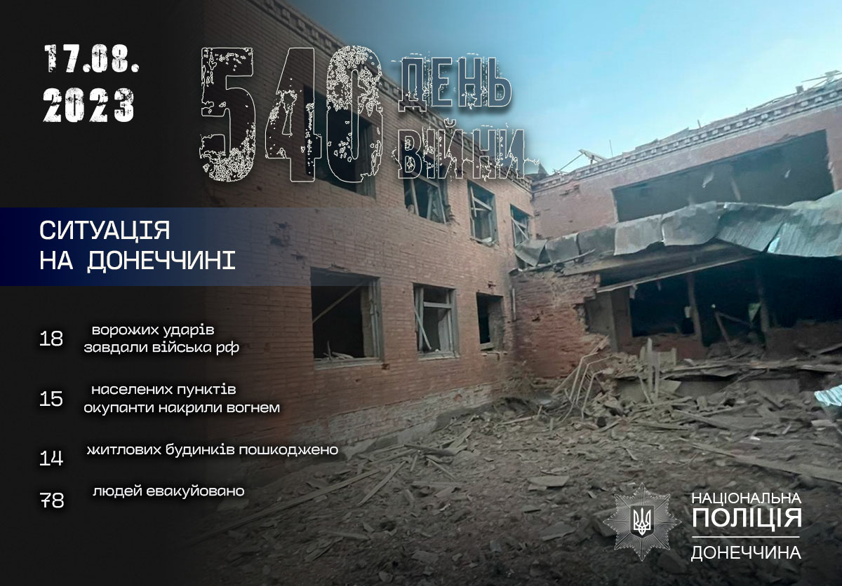 Упродовж доби окупаційні війська здійснили 18 обстрілів по цивільному населенню. Ворог застосував керовані авіабомби ФАБ-500, РСЗВ «Смерч, «Ураган», «Град», а також артилерію й танки.