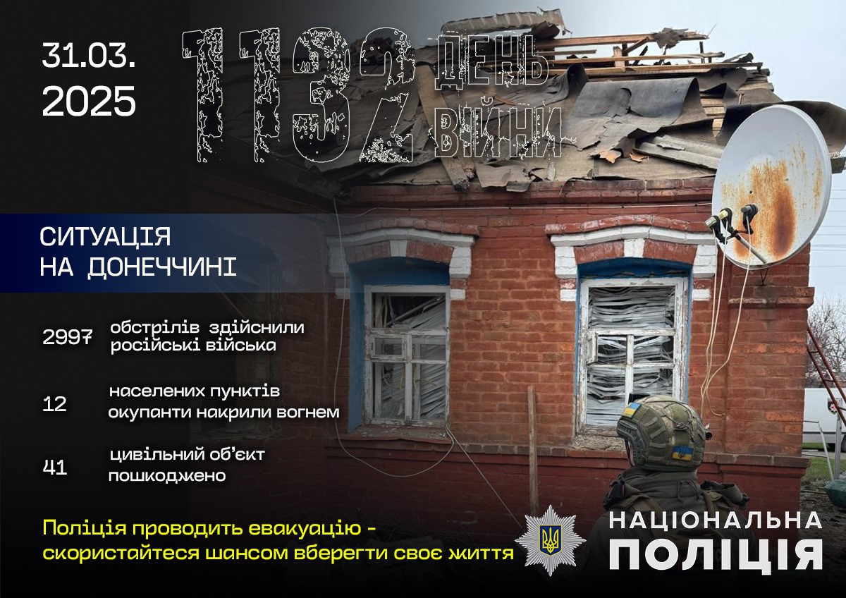 За минулу добу поліція зафіксувала 2 997 ворожих ударів по лінії фронту та житловому сектору.