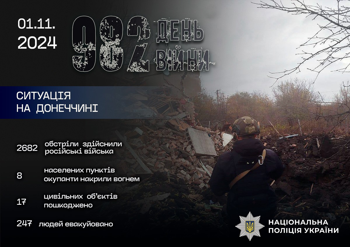 За добу поліція зафіксувала 2 682 ворожих обстріли по лінії фронту та житловому сектору.