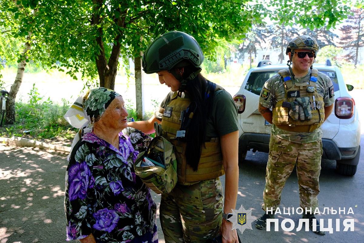 Попри постійні обстріли, правоохоронці піклуються про мешканців, які відмовляються виїжджати: доставляють гуманітарну допомогу, супроводжують доставку соцвиплат тощо.