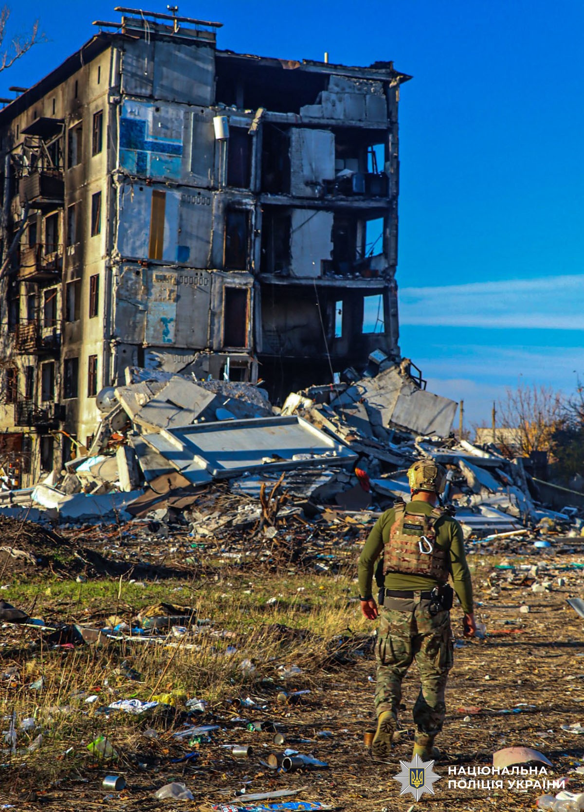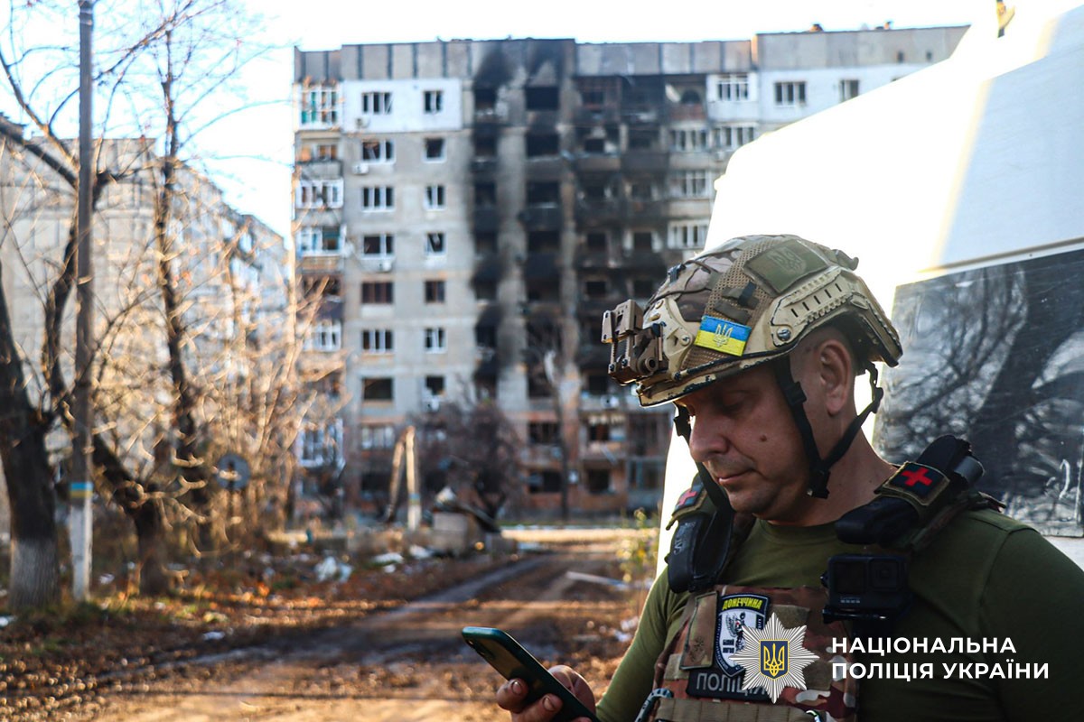 Авдіївка зустрічає правоохоронців ворожим вогнем з реактивної артилерії, мінометів та прильотами КАбів (керованих авіабомб). Маневруючи між вибухами, правоохоронці поспішають до приватного сектору, де на них чекають люди, які погодились евакуюватися.