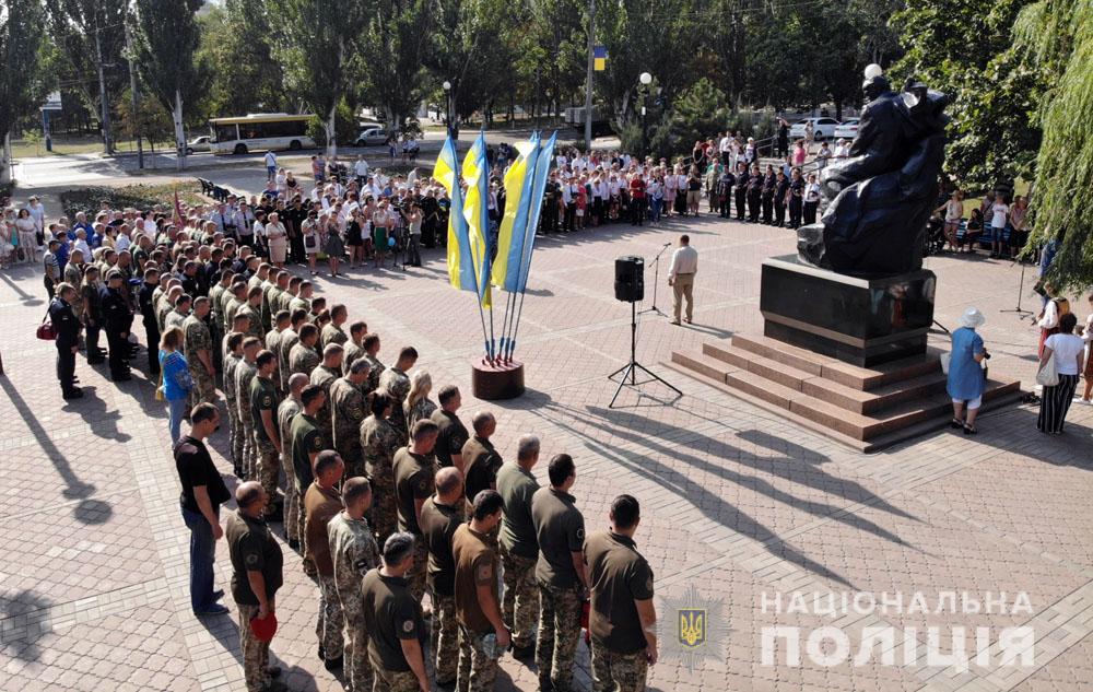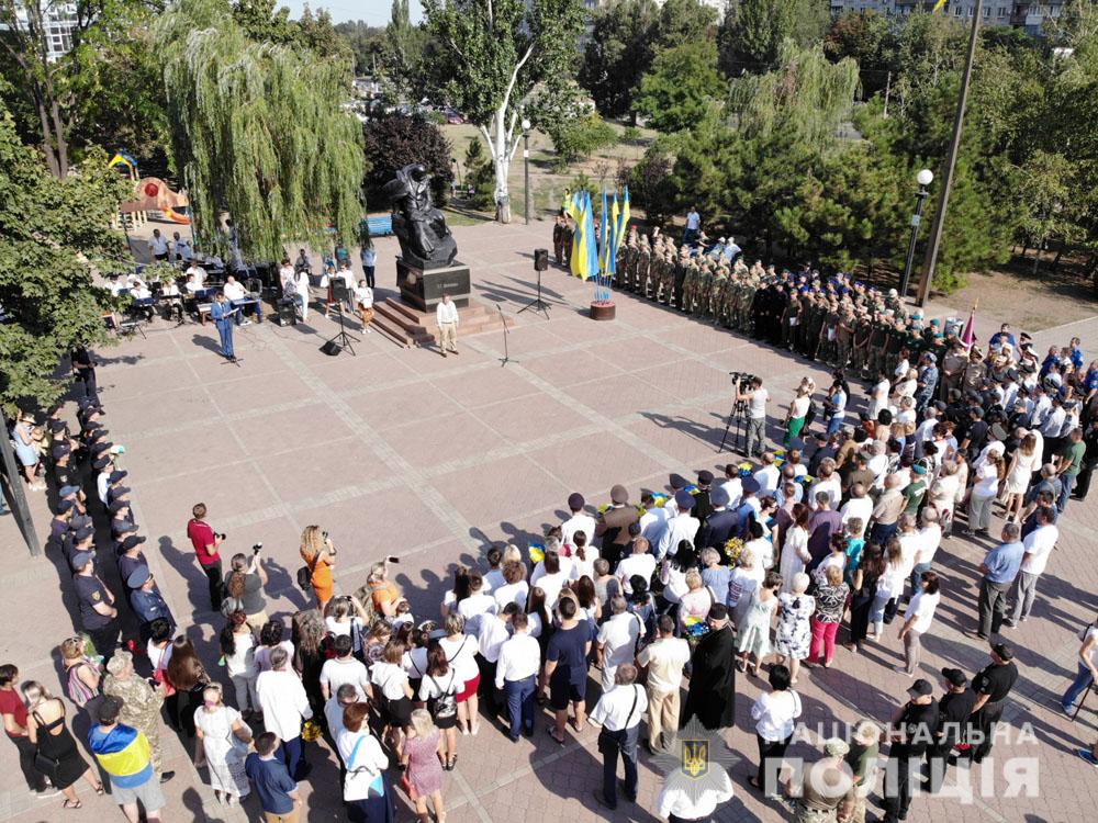 Урочисті заходи відбулися за участі тимчасово виконуючий обов’язки начальника Головного управління Нацполіції в Донецькій області Сергія Беседи. керівництва облдержадміністрації, ООС, силових структур області, представників органів місцевого самоврядування, громадськості та молоді.