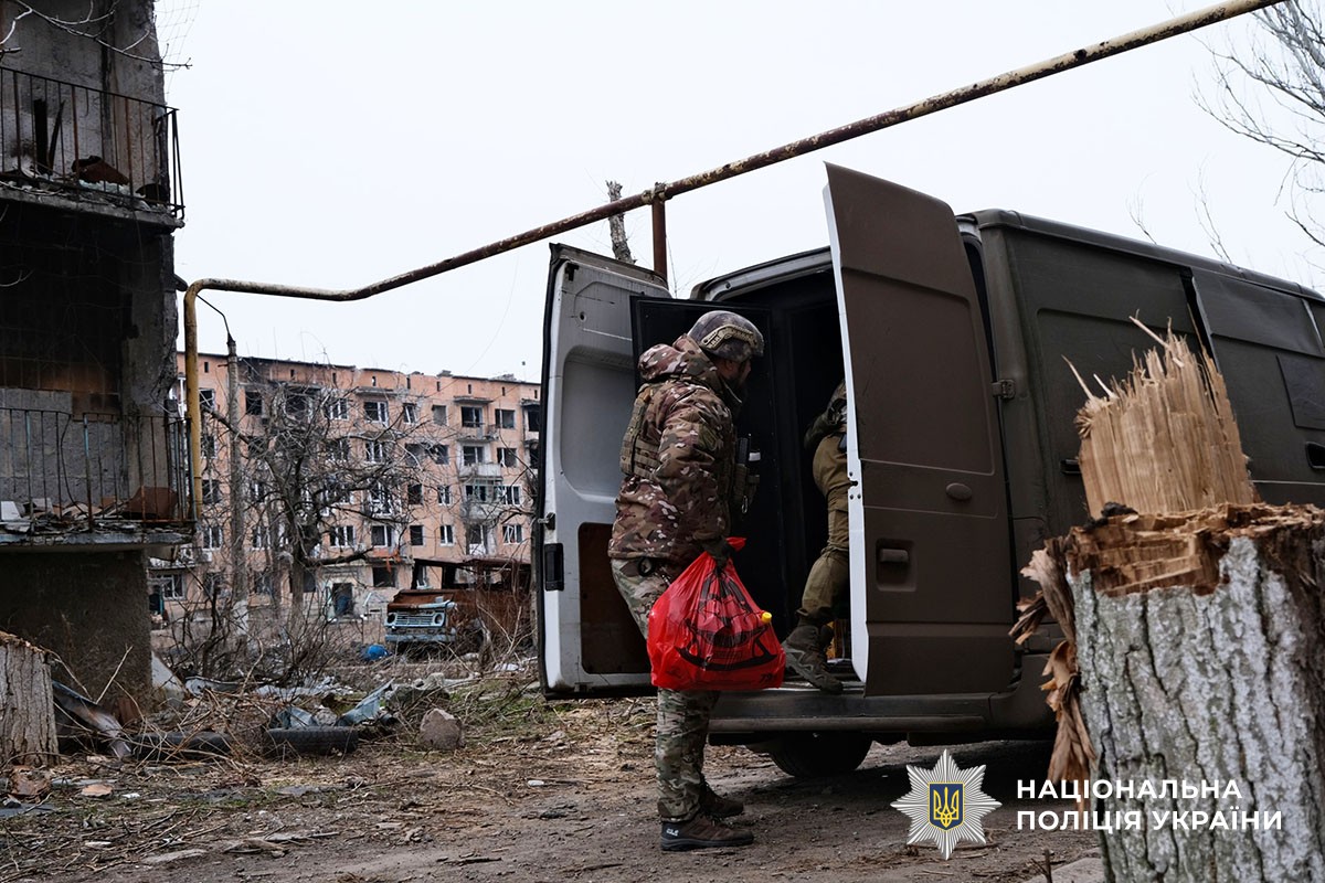 Квест на виживання: поліцейські під бомбами завезли у Вугледар гуманітарну допомогу