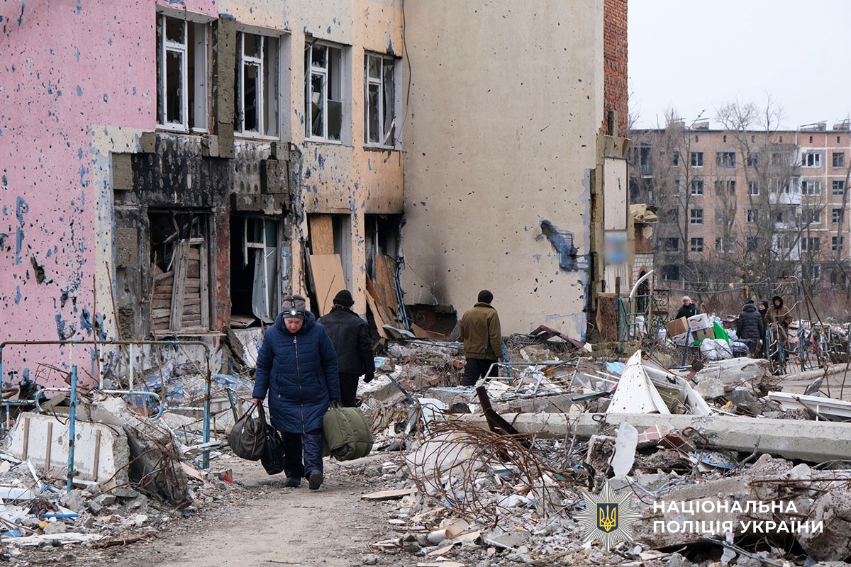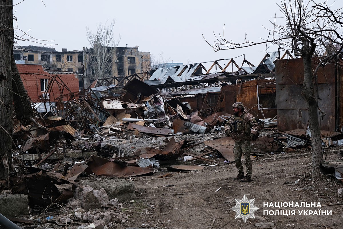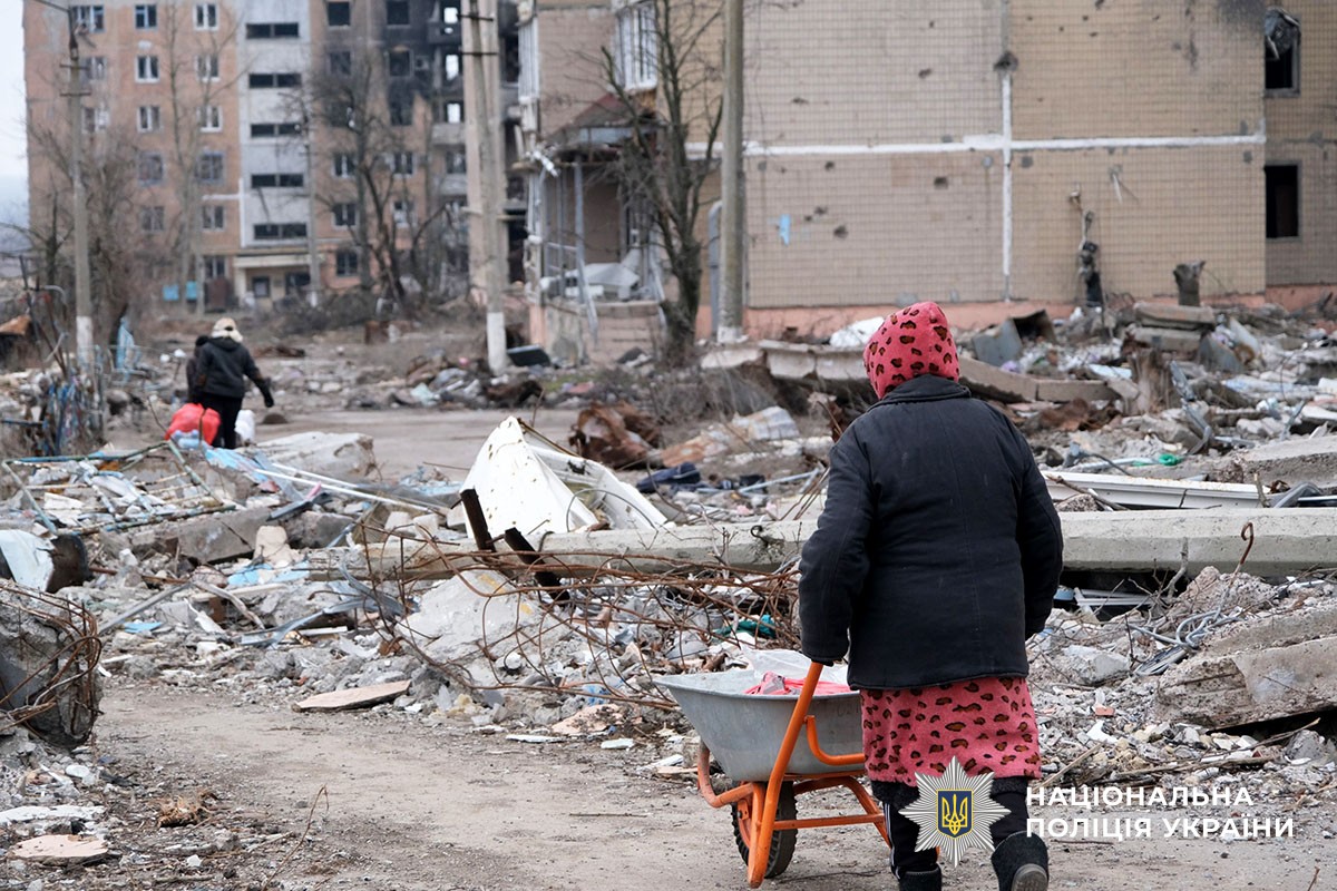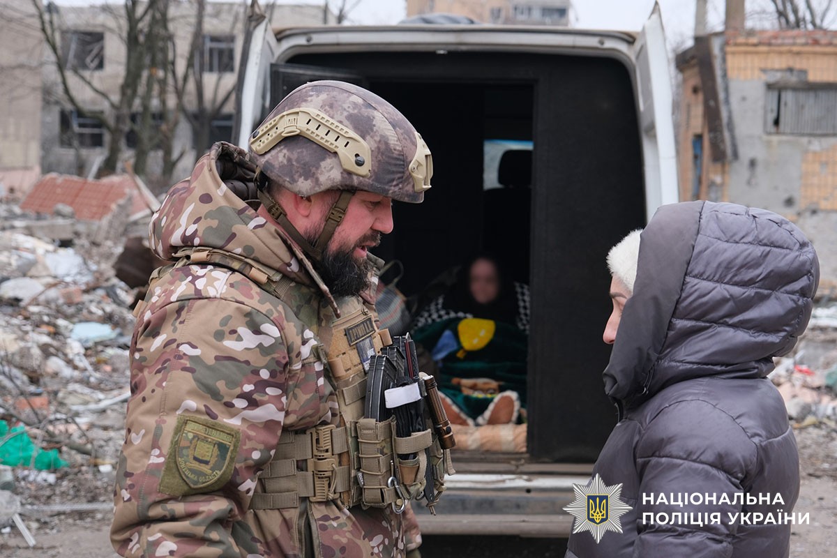 У місті залишається 108 мешканців, які переважно живуть під землею. Аби нагодувати їх та вивезти трьох людей, екіпаж поліції здолав низку випробувань: зруйновану дорогу під прицілом двох ворожих безпілотників та обстріл. А місцеві показали правоохоронцям зібрану ними «виставку» озброєння, яким їх вбивають росіяни.