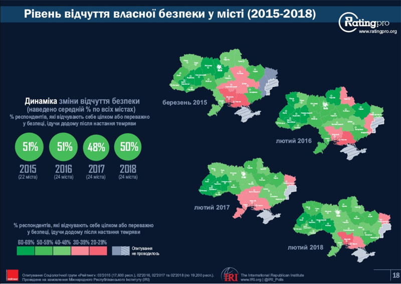 Більше того, за рік рівень відчуття безпеки зріс на 10%. Загальноукраїнський показник також підвищився і також становить 50%.