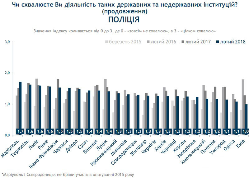 Крім того, Маріуполь став містом, де рівень схвалення діяльності поліції – найбільший в країні.