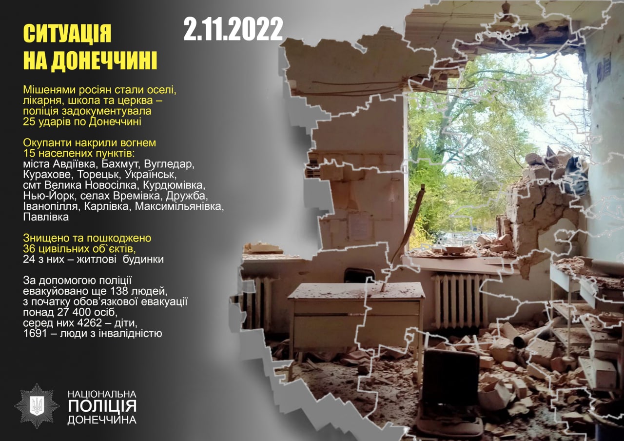 Мішенями росіян стали оселі, лікарня, школа та церква – поліція задокументувала 25 ударів по Донеччині