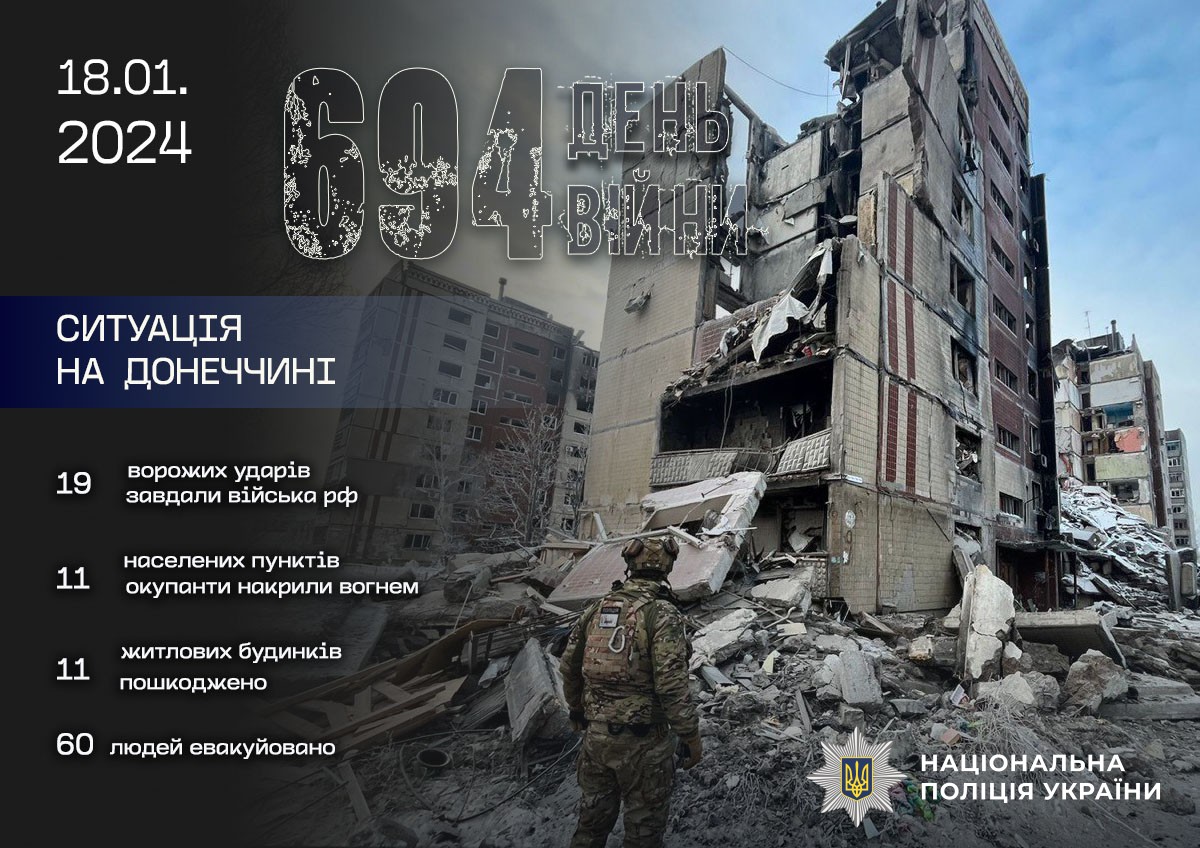 Минулої доби окупанти завдали 19 ударів по Донеччині – поліція фіксує наслідки