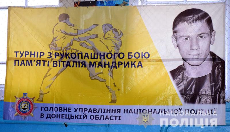 Сьогодні в Маріуполі відбувся ІІІ відкритий турнір Головного управління Національної поліції в Донецькій області з рукопашного бою імені бійця спецпідрозділу «Сокіл» Віталія Мандрика. Силою духу та бойовим мистецтвом вшановують щороку колеги подвиг побратима, який віддав за порятунок 500-тисячного міста найдорожче – власне життя.
