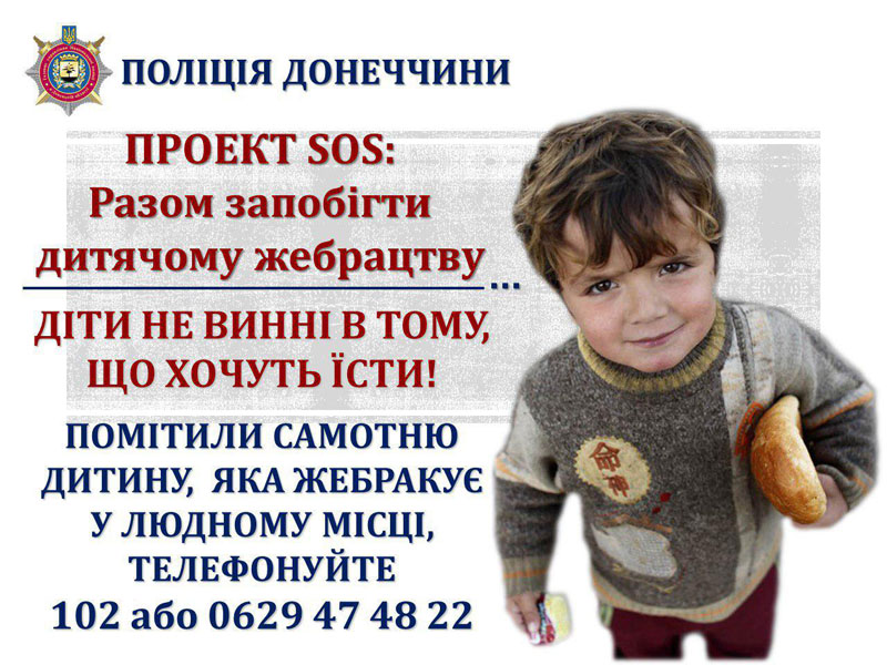 Поліція Донеччини в рамках проекту SOS: «Разом запобігти дитячому жебрацтву» оголошує конкурс на найкращий відеоролик для учасників громадської організації «Молодіжна ліга майбутніх поліцейських».