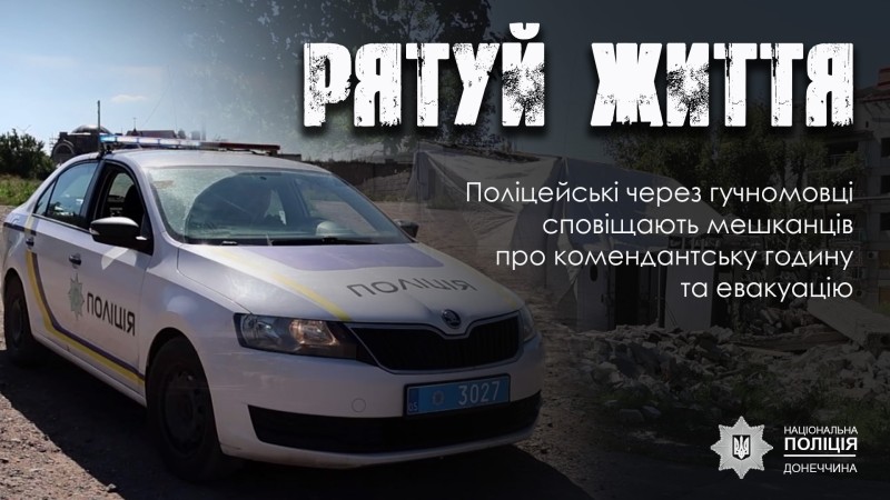 На Донеччині поліцейські через гучномовці сповіщають мешканців лінії фронту про комендантську годину та евакуацію