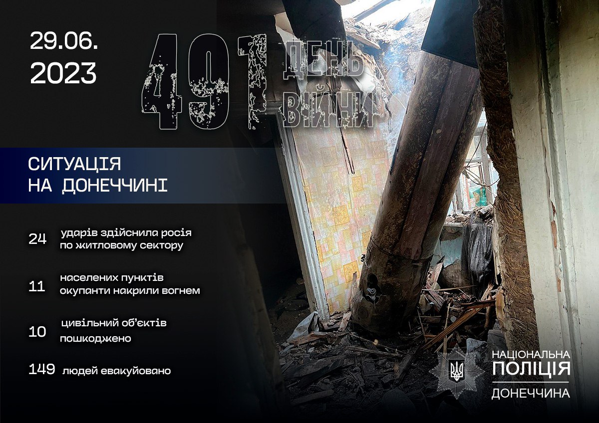 На Донеччині за добу вбито одну людину та двох поранено. Поліція задокументувала воєнні злочини росії