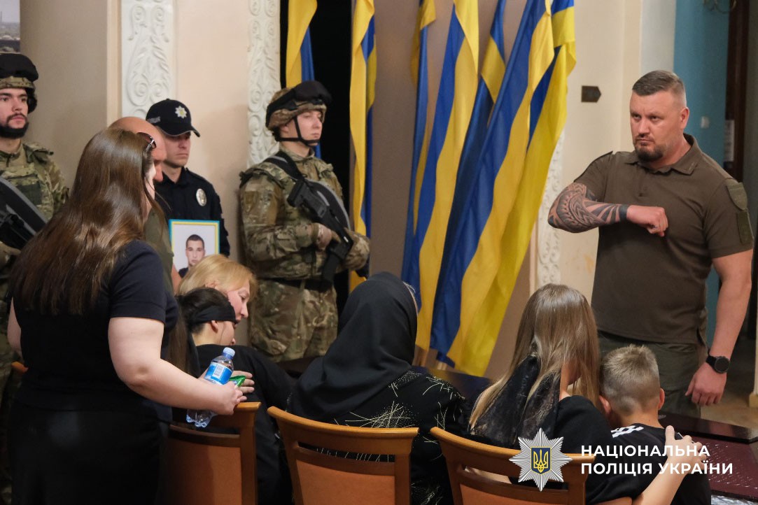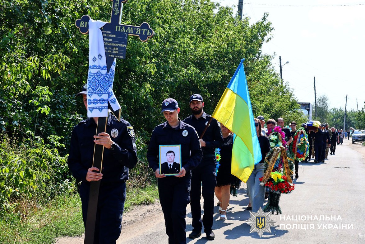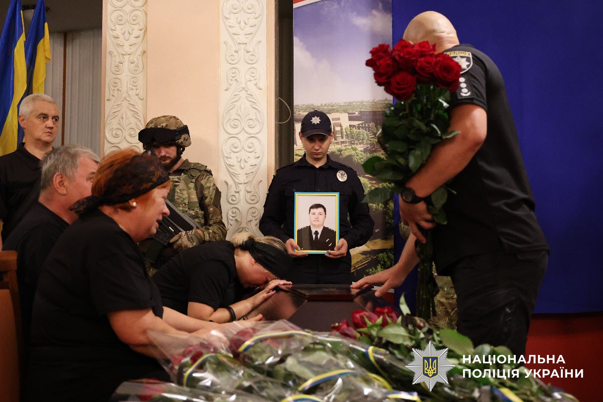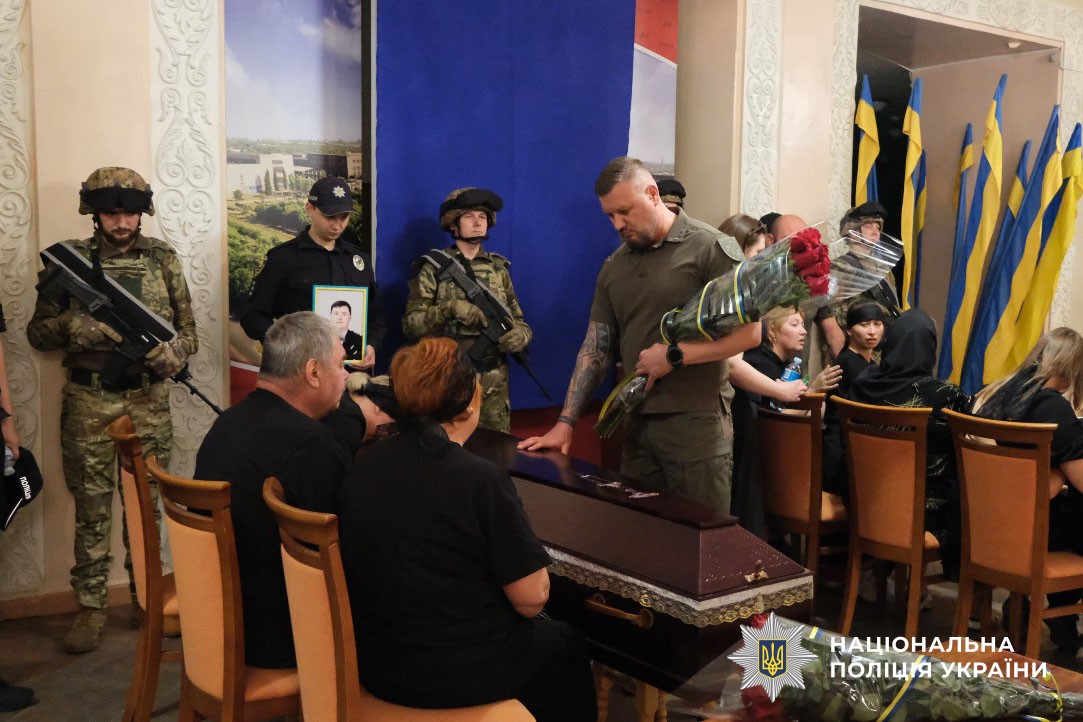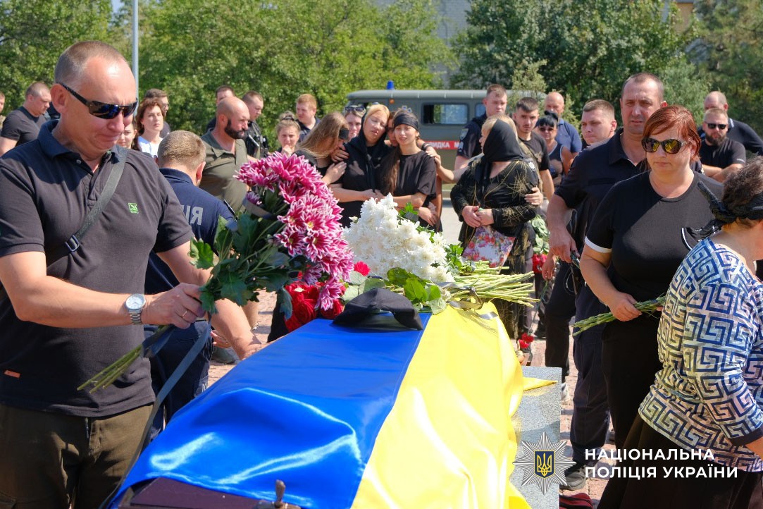 Під час прощання начальник ГУНП в Донецькій області Руслан Осипенко зазначив, що серпень видався важким для поліції Донеччини, яка з початку місяця втратила вже вісьмох співробітників: