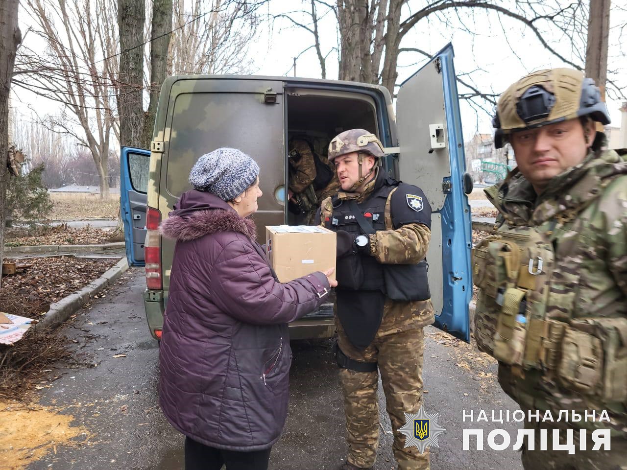 Цього разу правоохоронці роздали місцевим мешканцям продуктові і гігієнічні набори, медикаменти та солодощі для діток, зібрані волонтерами європейських країн. Громадяни з радістю приймали допомогу, адже це єдине, що дозволяє їм триматися. Люди живуть у зруйнованих будинках, підвалах, без комунікацій і зв’язку. Аби приготувати їжу, вони збирають дощову воду, але ні на що не жаліються.