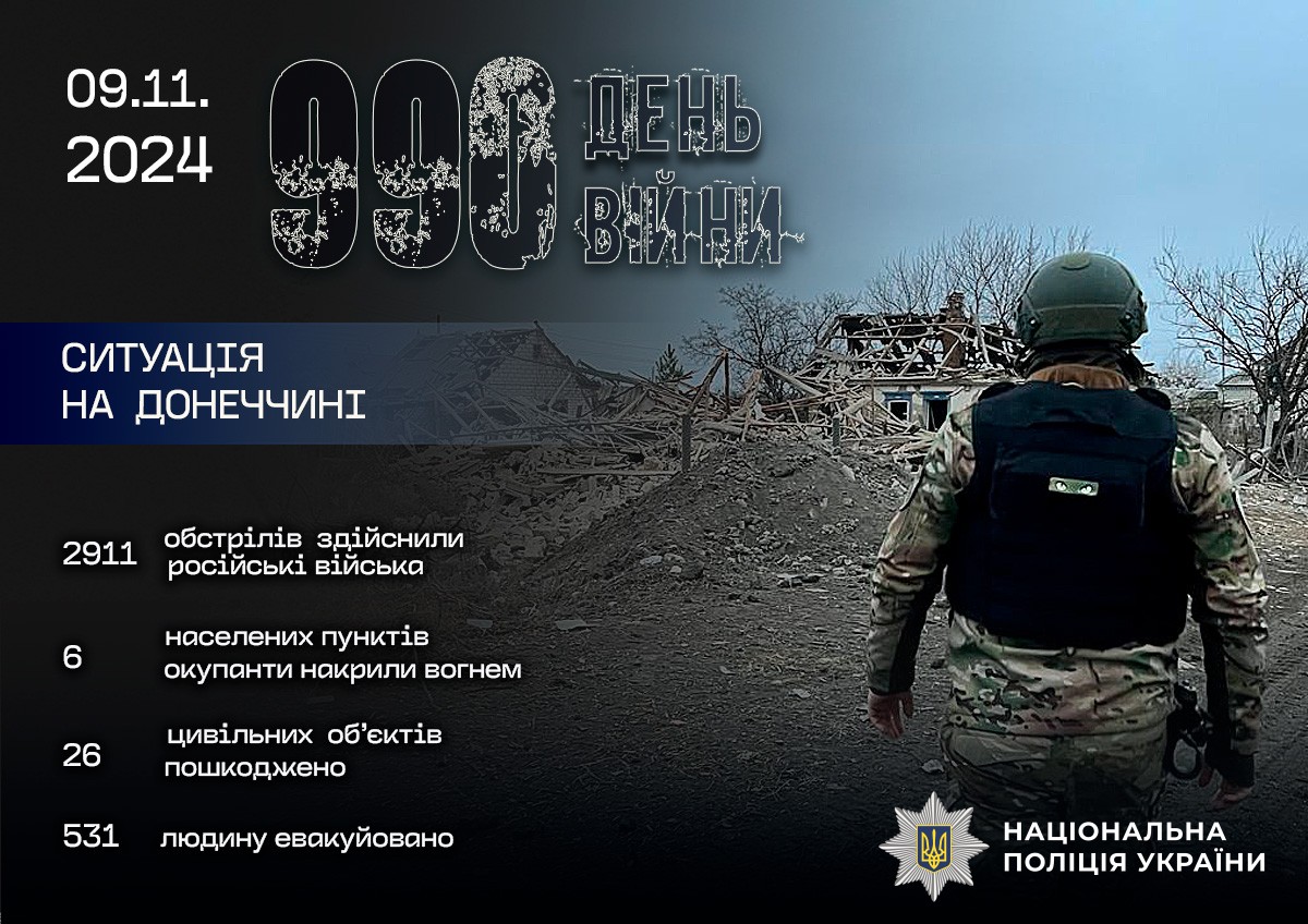 За добу поліція зафіксувала 2 911 ворожих обстрілів по лінії фронту та житловому сектору.