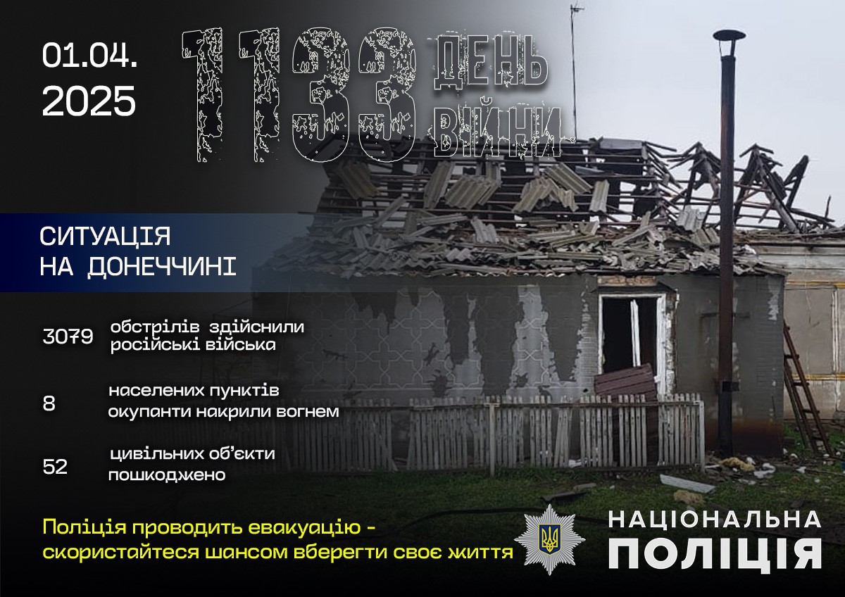 За минулу добу поліція зафіксувала 3 079 ворожих ударів по лінії фронту та житловому сектору.