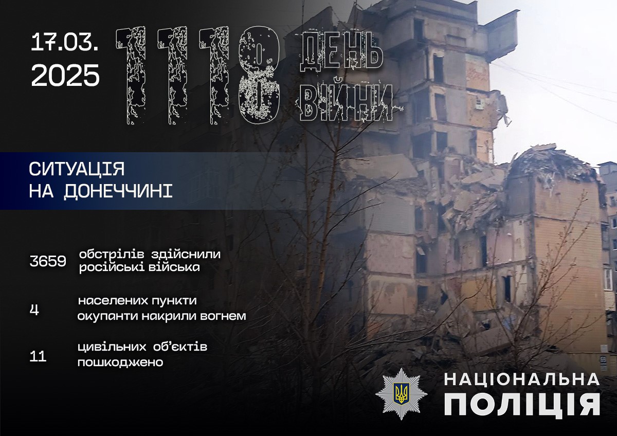 Протягом доби поліція зафіксувала 3 659 ворожих ударів по лінії фронту та житловому сектору.