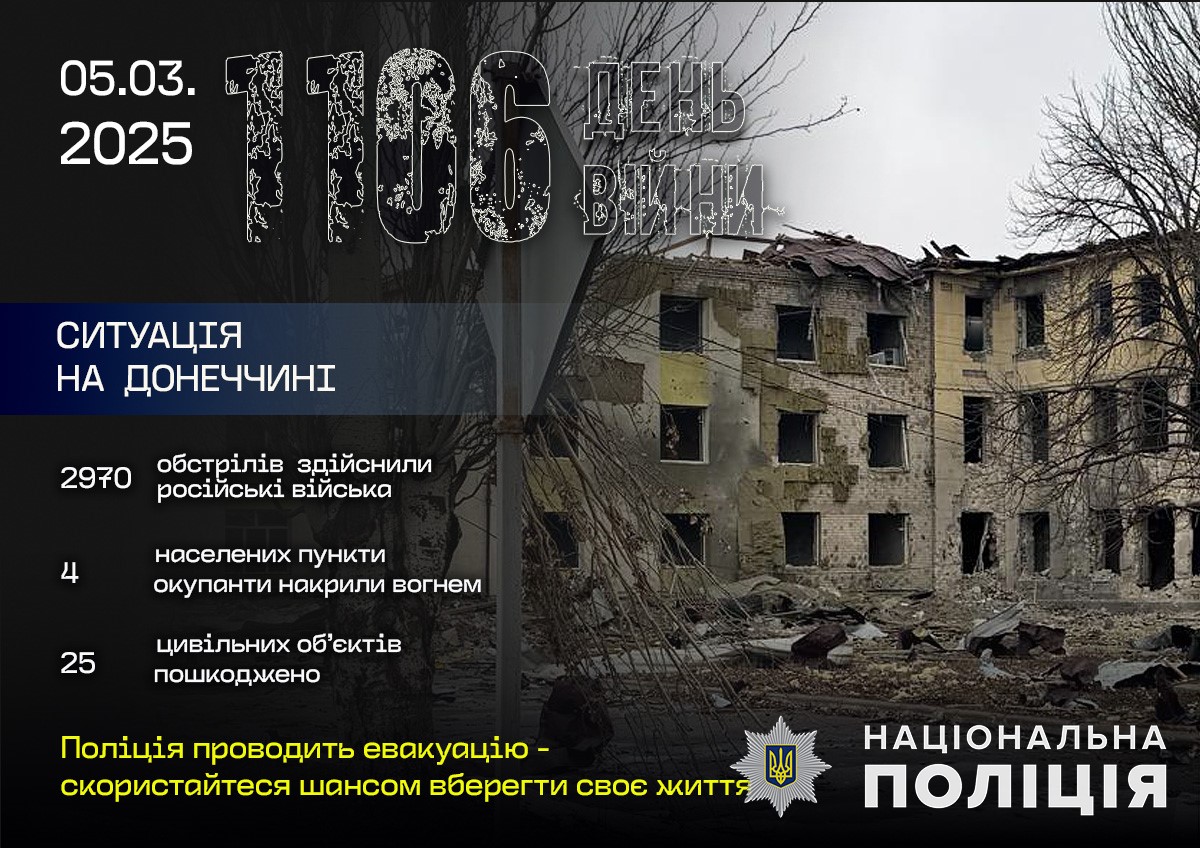 Шановні громадяни, дотримуйтесь комендантської години та не виїжджайте самостійно неперевіреними маршрутами – ворог розстрілює цивільні авто. Влада за допомогою поліції організує евакуацію з подальшим поселенням – скористайтеся шансом вберегти своє життя.