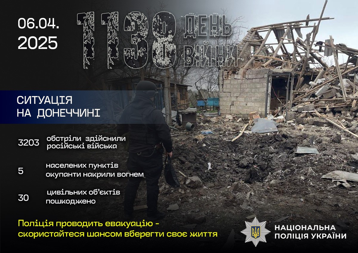 За добу поліція зафіксувала 3 203 ворожих атаки по лінії фронту та житловому сектору.