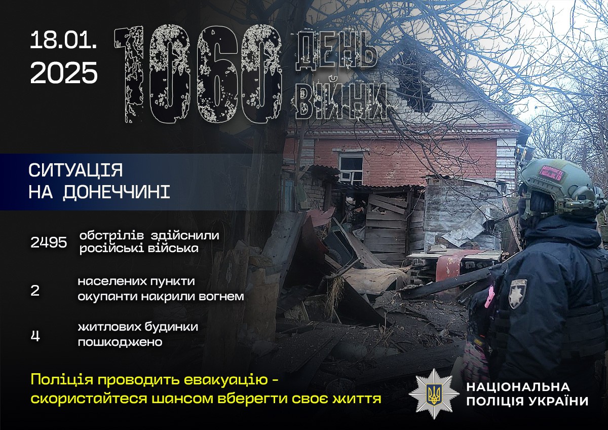 Поліція зафіксувала 2 495 ворожих ударів по лінії фронту та житловому сектору.