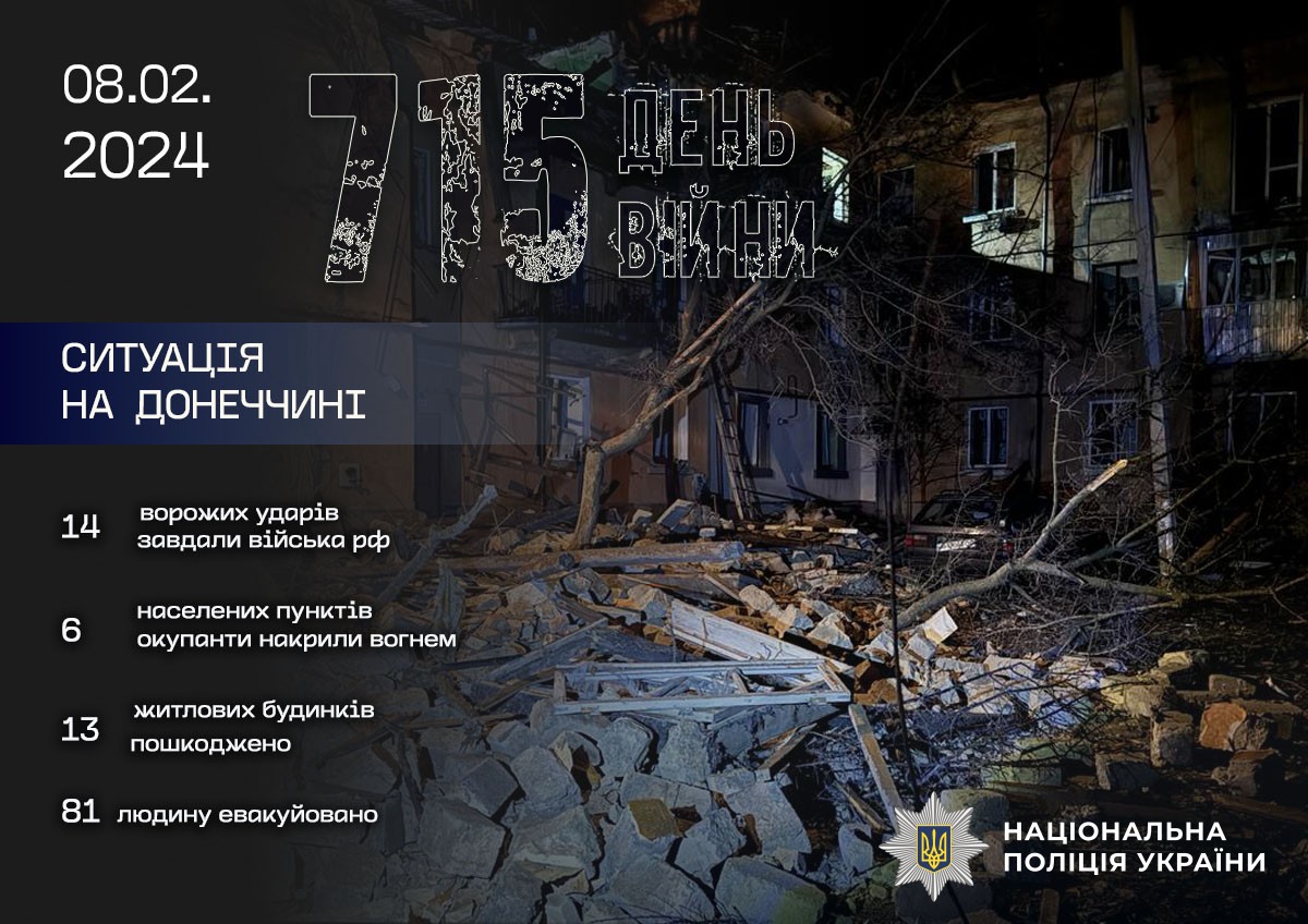 Сьогодні близько 00:30 росія завдала 7 ракетних ударів по Селидовому. Станом на ранок відомо про одну загиблу особу та сімох поранених, серед них дитина 6 років. Руйнувань зазнали 12 житлових будинків, школа, три дитсадки, приватне підприємство та автостоянка з 7 автомобілями.