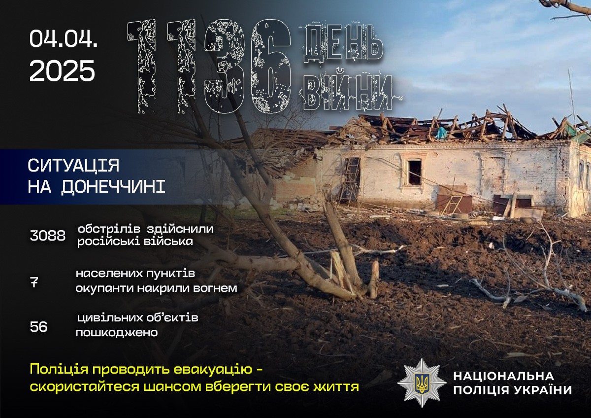 Поліція зафіксувала 3 088 ворожих ударів по лінії фронту та житловому сектору.