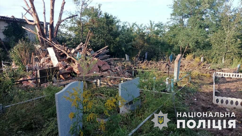 Пошкоджено 26 цивільних об’єктів: 3 житлових будинки, 20 могил, автомобілі та дорожнє покриття.