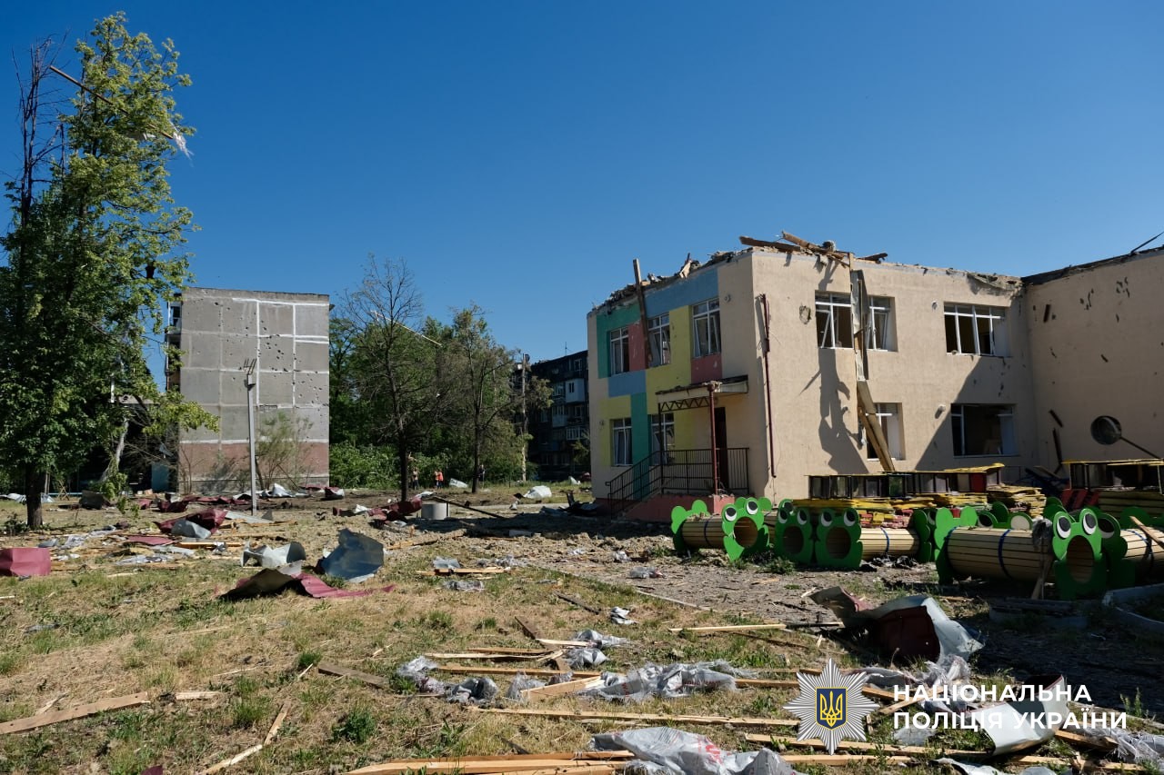 Зруйновано заклад дошкільної освіти, пошкоджено 12 багатоквартирних будинків, три цивільних авто. До повномасштабного вторгнення дитсадок вміщував понад 200 дітей.