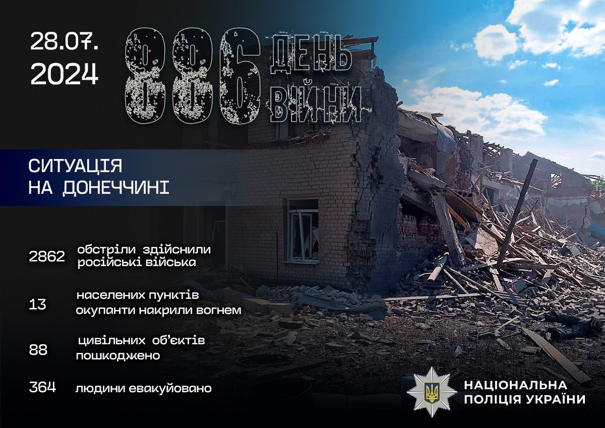 Під вогнем росії перебували 13 населених пунктів: міста Костянтинівка, Курахове, Лиман, Мирноград, Новогродівка, Торецьк, села Галицинівка, Діброва, Зоря, Іванівка, Іванопілля, Катеринівка, Рідкодуб.