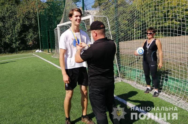 Поліцейський нагородив команду переможців кубками, медалями та грамотами, які були надані фізкультурно-спортивним товариством «Динамо» України.