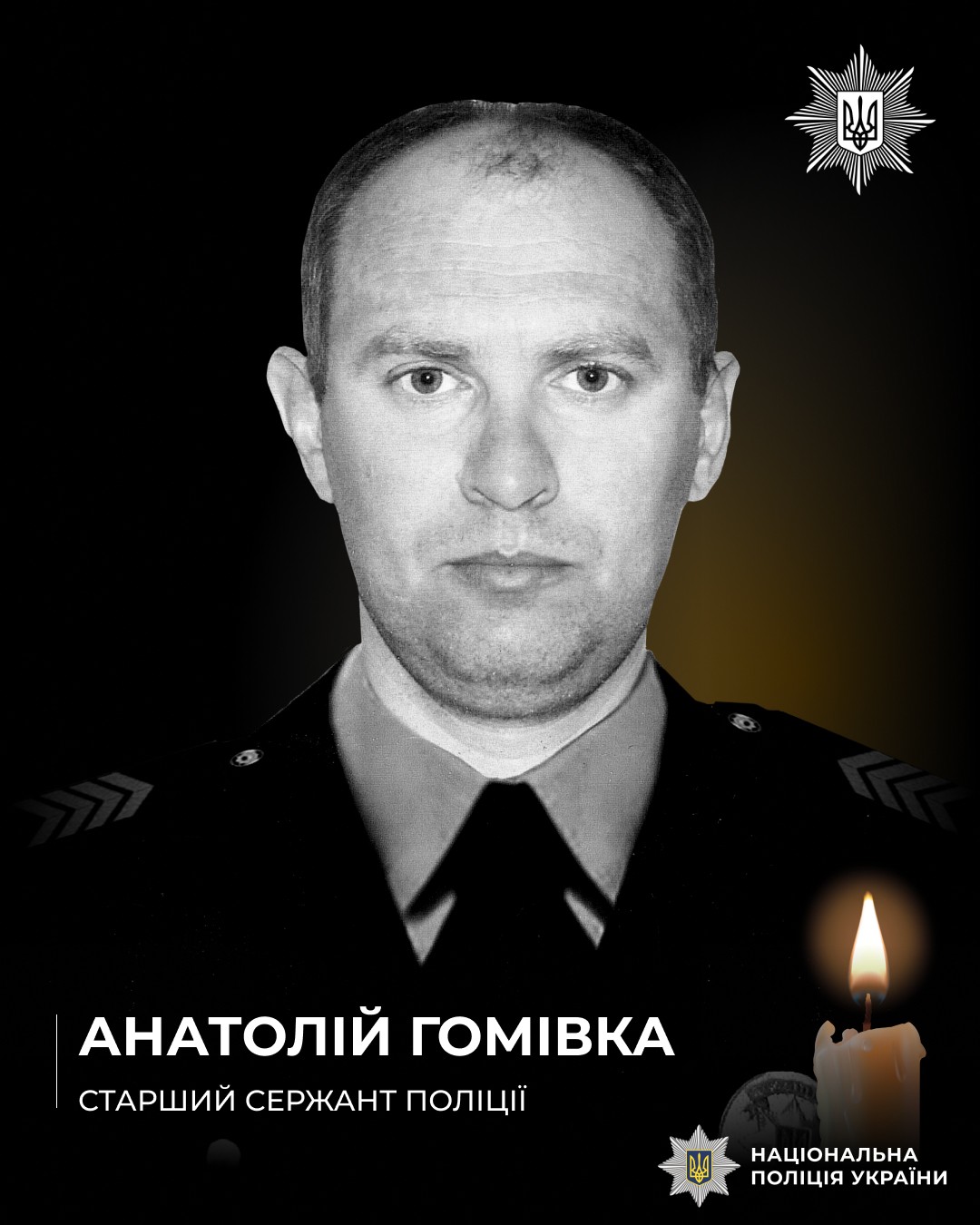 Анатолій Гомівка працював помічником чергового. Навіть коли зник мобільний зв’язок, правоохоронець не залишив адмінбудівлю, щоби громадяни могли в будь-який момент звернутися до поліції. Загинув старший сержант поліції, коли вийшов навідати сім’ю. У цей час ворог наніс авіаудар по двору його будинку. В блокадному місті через відсутність медикаментів і лікарів врятувати поліцейського не вдалося.